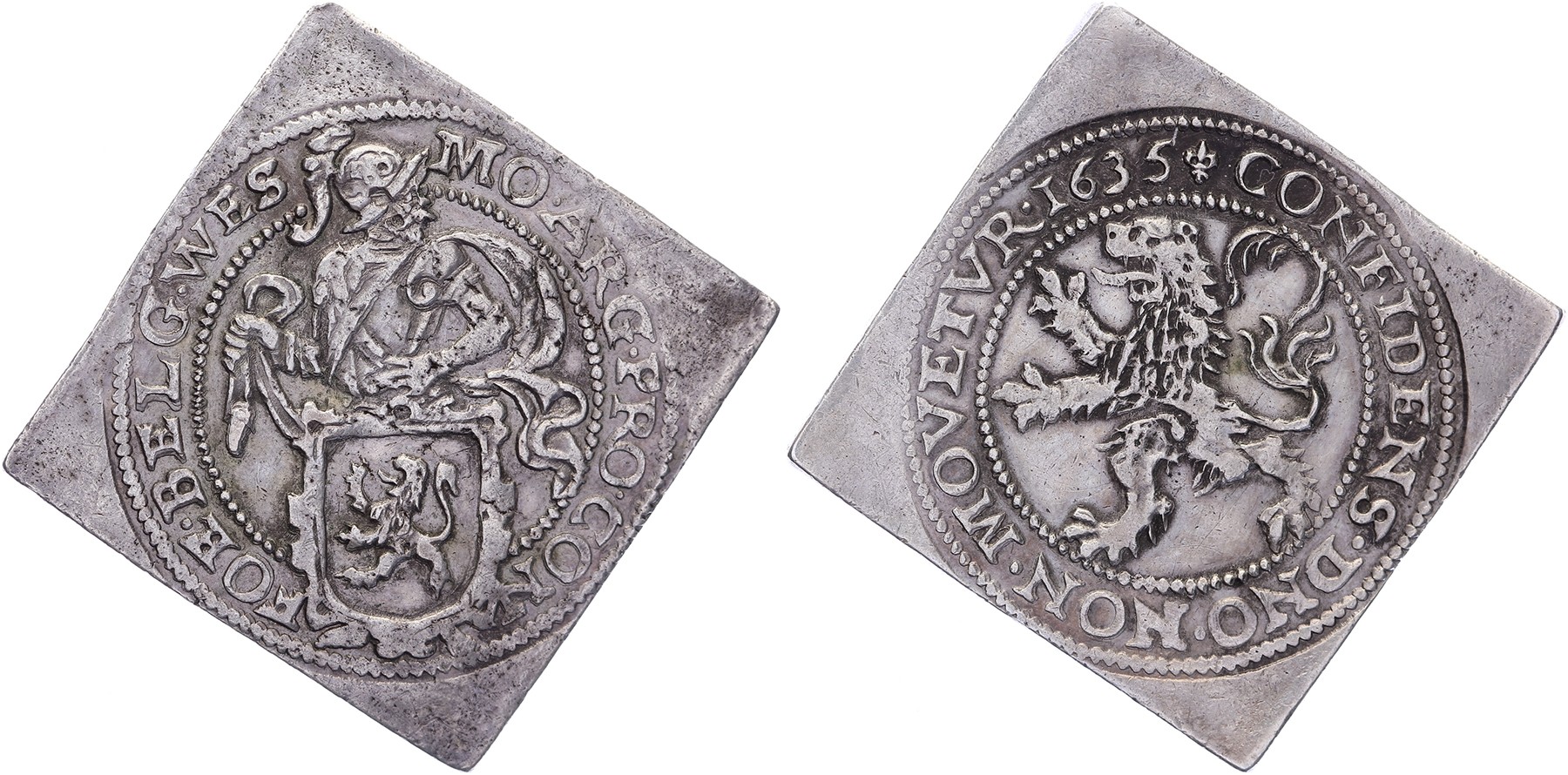 ½ Leeuwendaalder 1635. Afslag op vierkant plaatje van 17,39 gram.Delm. 873a; CNM 2.46.25; HPM 18.1. Ruim zeer fraai.