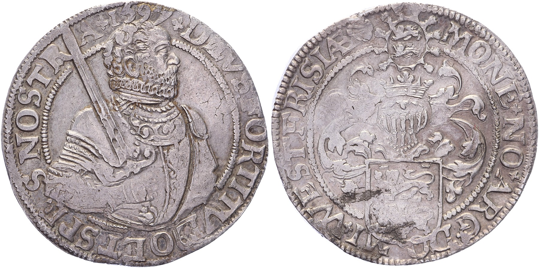 Gehelmde rijksdaalder of prinsendaalder 1597. Delm. 924; CNM 2.46.28; HPM 24. Vrijwel zeer fraai.