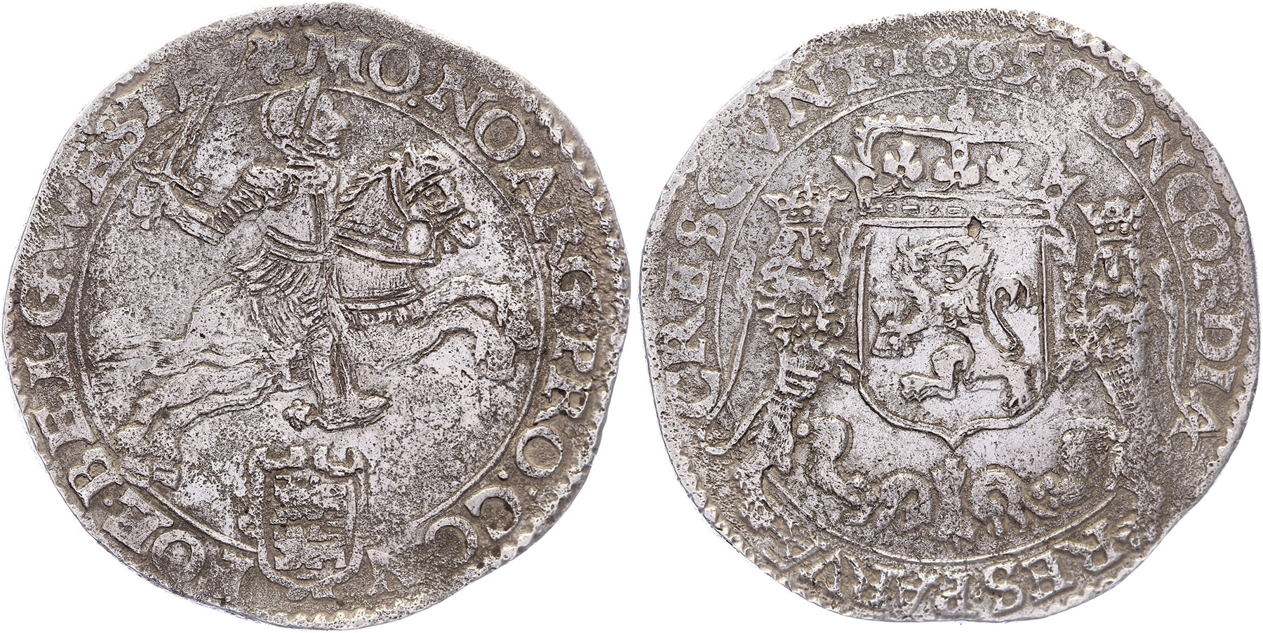 Rijder of dukaton 1665. Delm. 1019; CNM 2.46.38; HPM 28. Pokdalig. Ruim fraai / Zeer fraai.