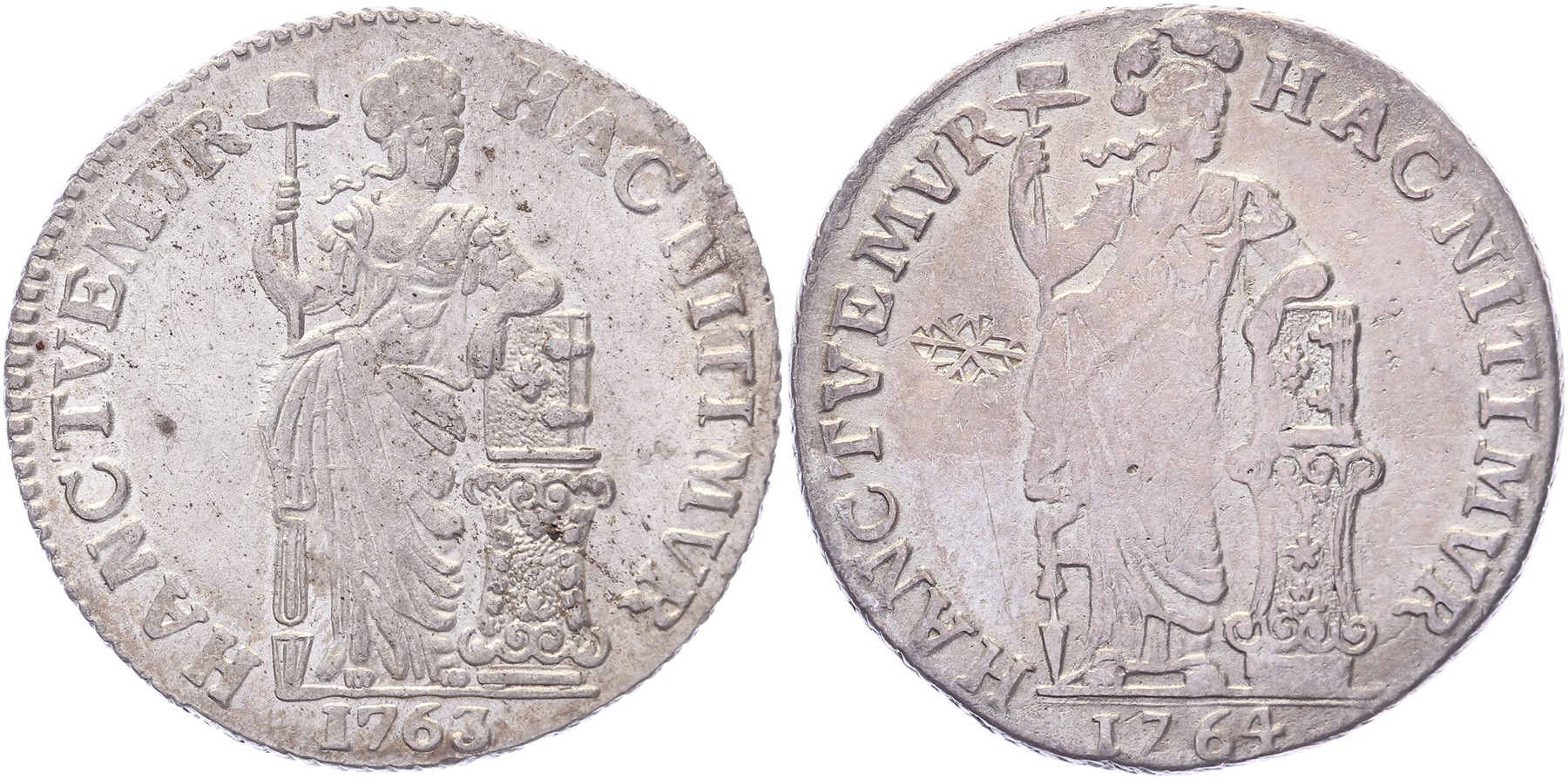 Lot (2) Gulden 1763 en 1764 (met klop Soumenep). CNM 2.46.57; HPM 48. Zeer fraai en beter.