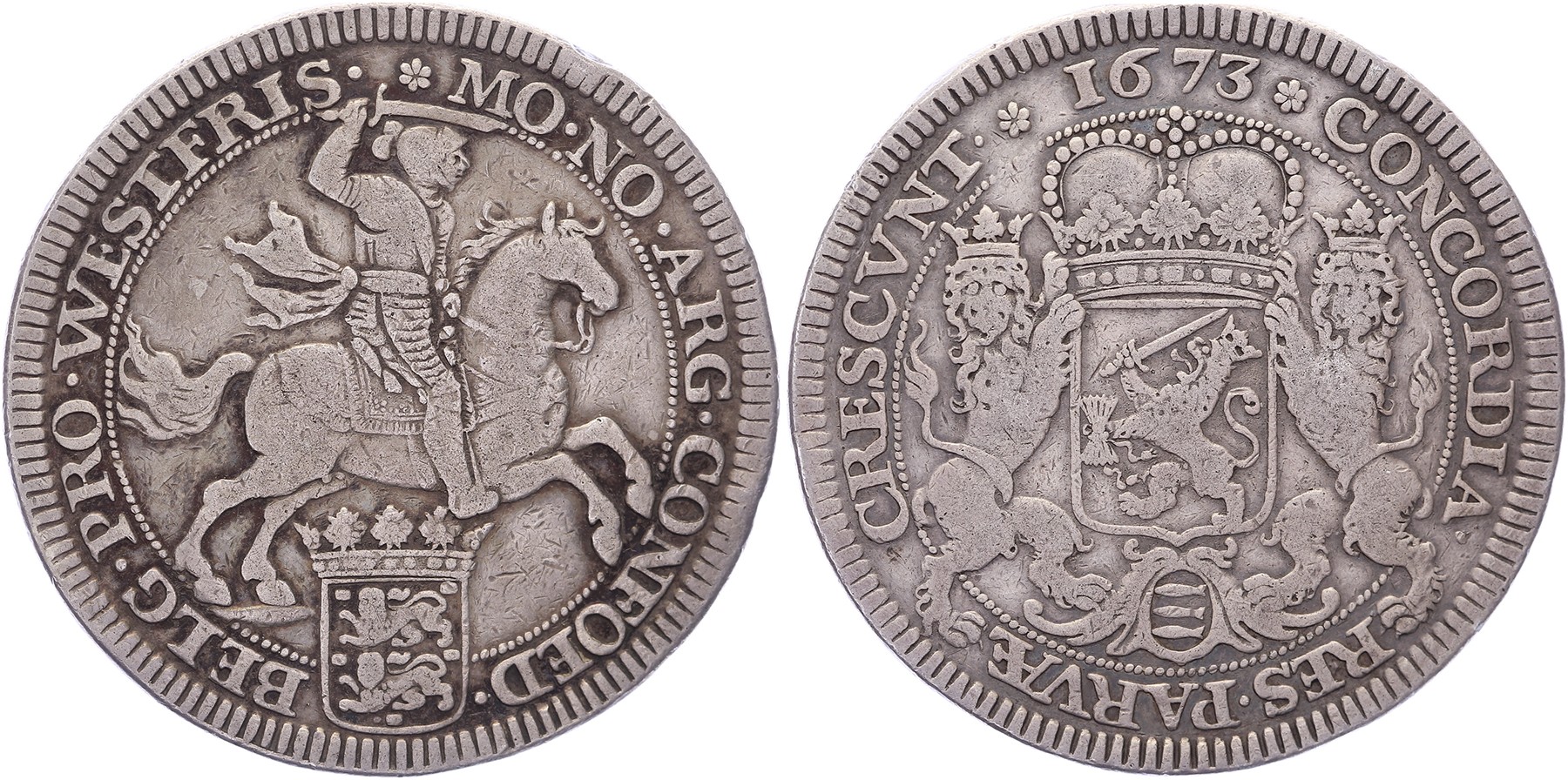 Zilveren rijder of dukaton 1673. Delm. 1021; CNM 2.15.3; HPM 77. Zeer fraai.