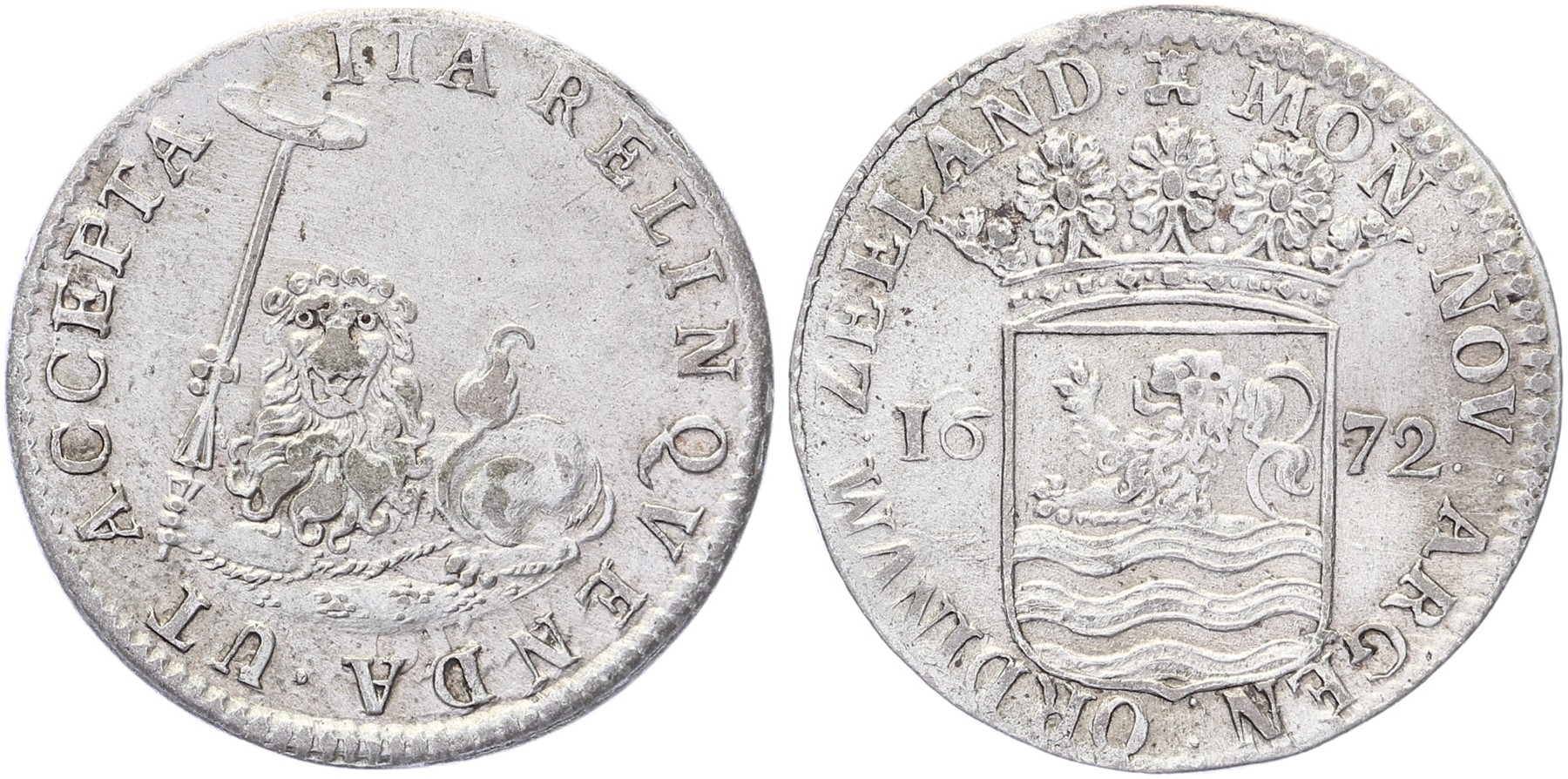 Hoedjesschelling van 6 Stuiver 1672. CNM 2.48.81. Vrijwel prachtig.