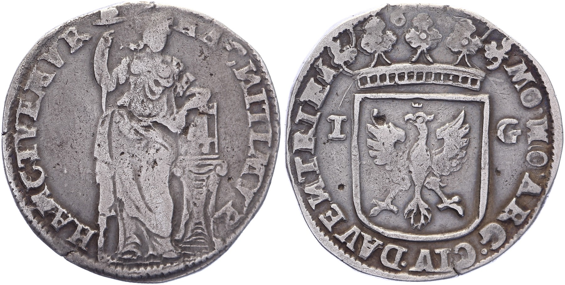 Stedelijke gulden 1687. Delm. 1176; CNM 2.12.48; HPM 36. Bijna zeer fraai.
