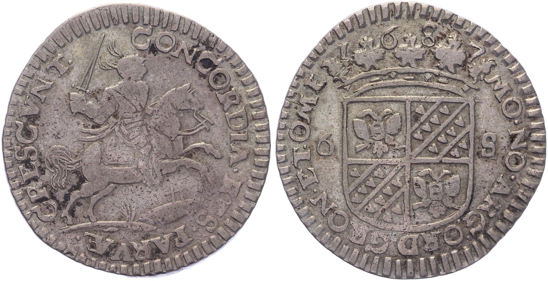 Rijderschelling 1687. CNM 2.20.16; HPM 10. Zeer fraai.