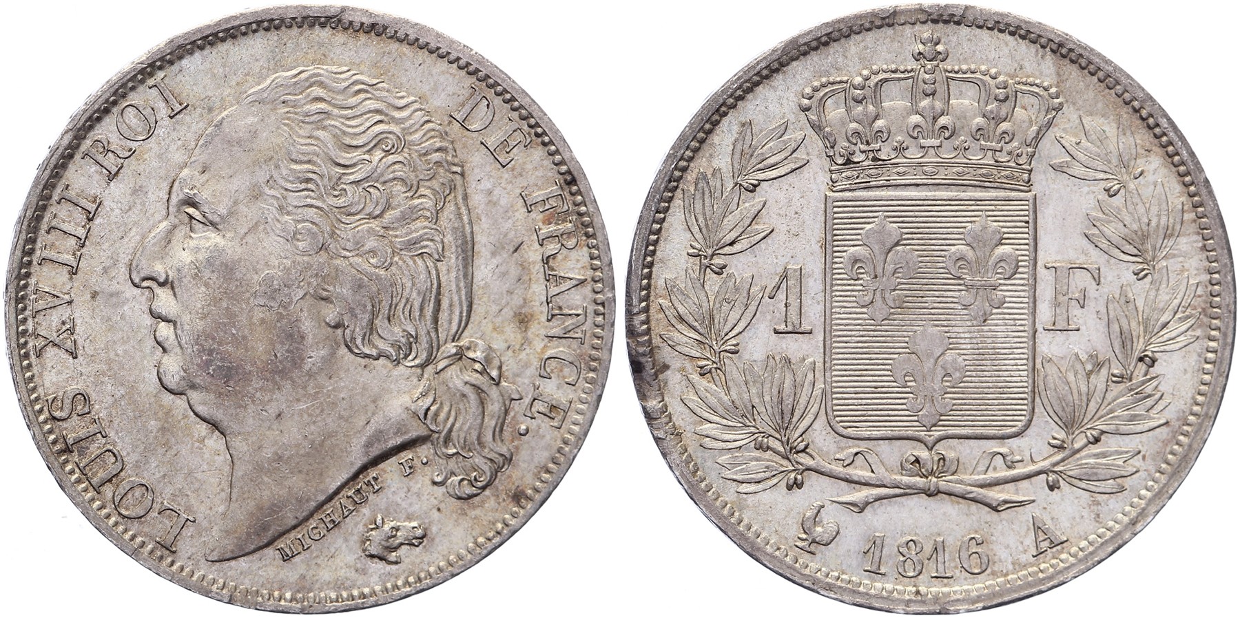 Franc 1816 A. Gad. 449; KM 709.1. Ajustment marks reverse. UNC.