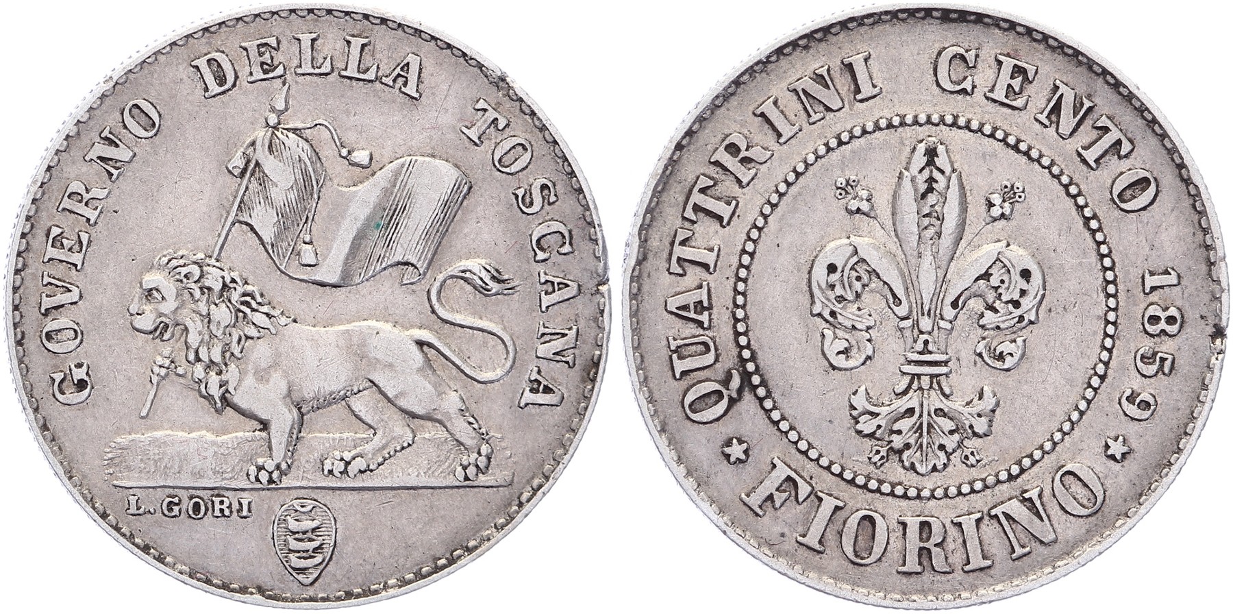 Fiorino 1859. KM C79; MIR 467. Minor edge failure. VF.
