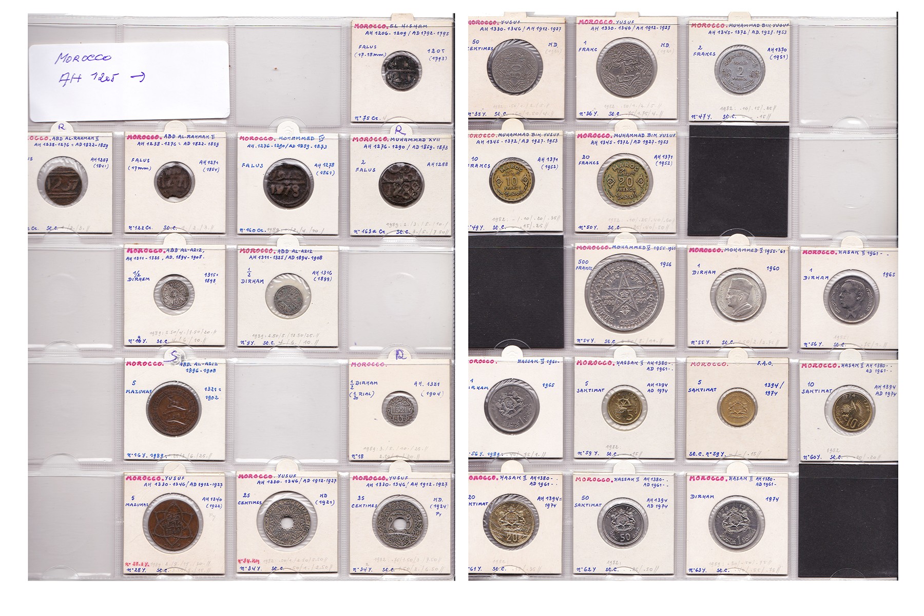 Morocco. Lot (27), type collection 1793-1974, o.a. 2 Falus 1288.
