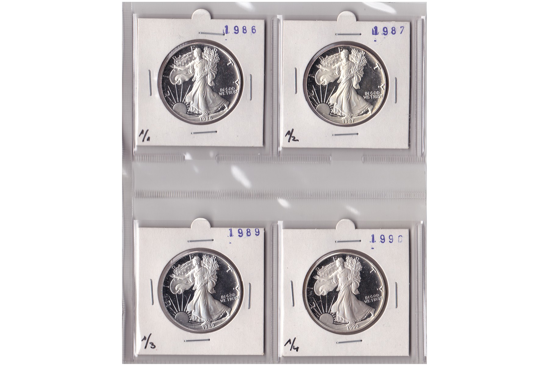 U.S.A. Lot (4) Dollar 1986, 1987, 1989, 1990. Proof.