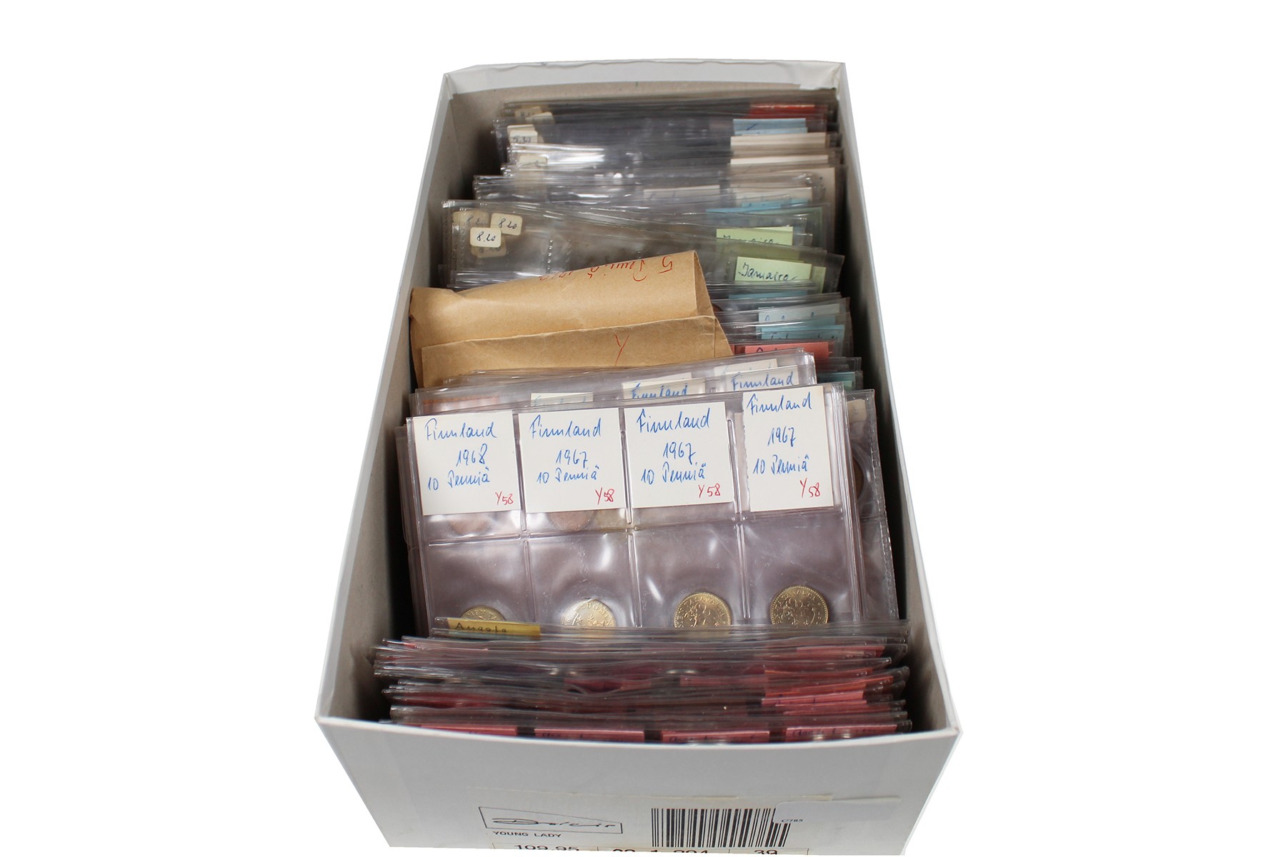 Doos met primitieve muntsets uit de vijftiger en zestiger jaren! Afkomstig from all over the world! Ca. 125 stuks.