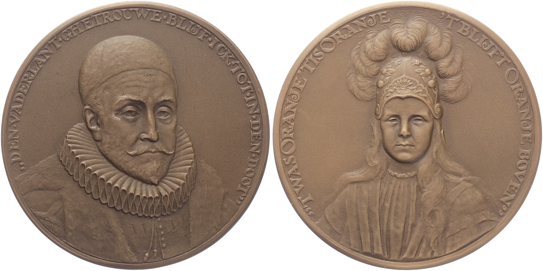 1918 Betogingen tegen de novemberrevolutie. Borstbeeld Willem van Oranje iets naar rechts. / Borstbeeld prinses Juliana als Nederlandse maagd. Æ 60. KB I-1300; CJCW 159. Prachtig.
