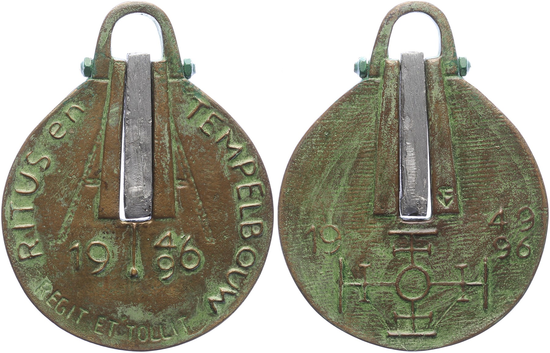 Ritus en Tempelbouw (Thot) 50 jaar, 1946-1996. Æ met loden lewis 55x70. Prachtig.