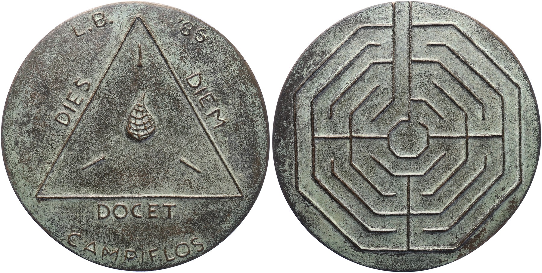Driehoek met vlam en Dies; Diem; Docet en Campiflos. / 8 hoekig labyrint. Æ 92. Prachtig.