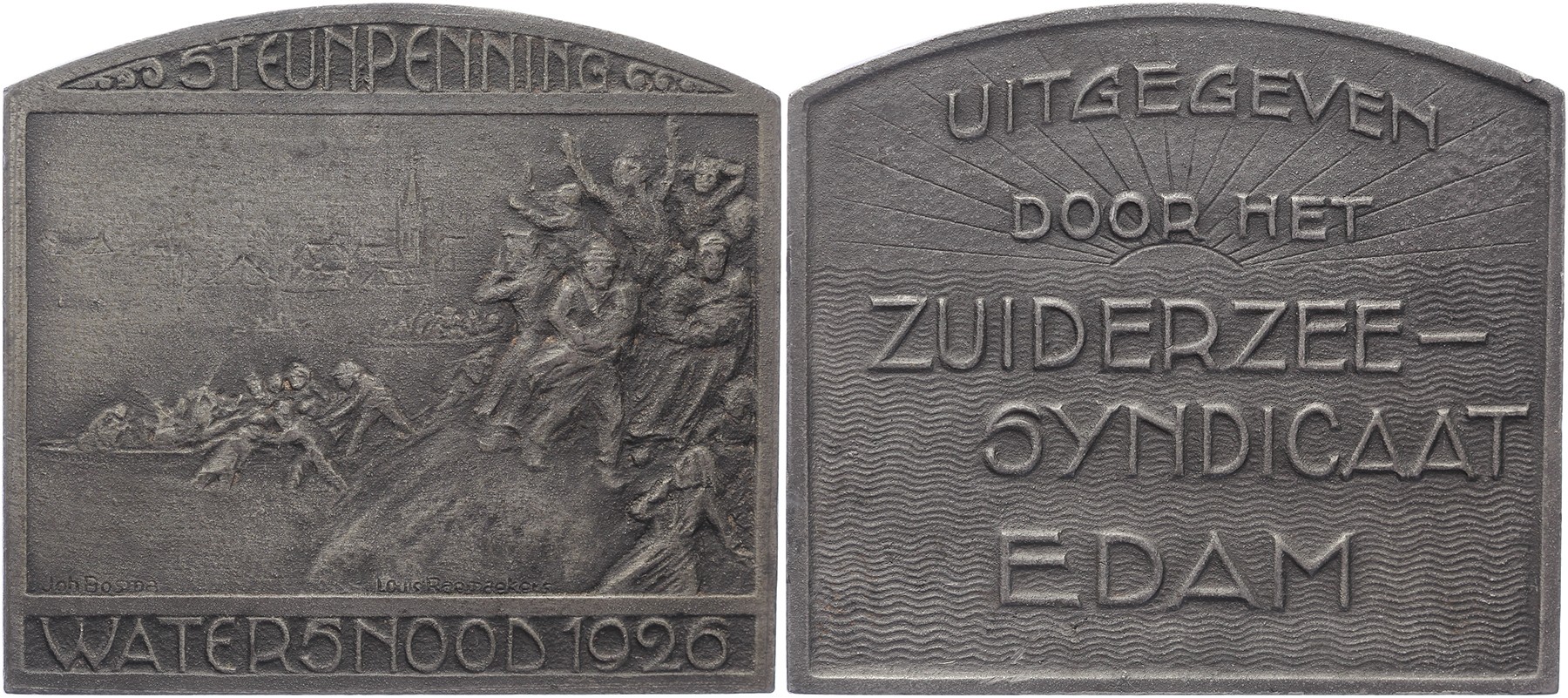 1926 Steunpenning Watersnood Edam. Vluchtende mensen. / Tekst. - Tin 71x 64. Joh. Bosma & L. Raemaekers. Overwegend prachtig.
