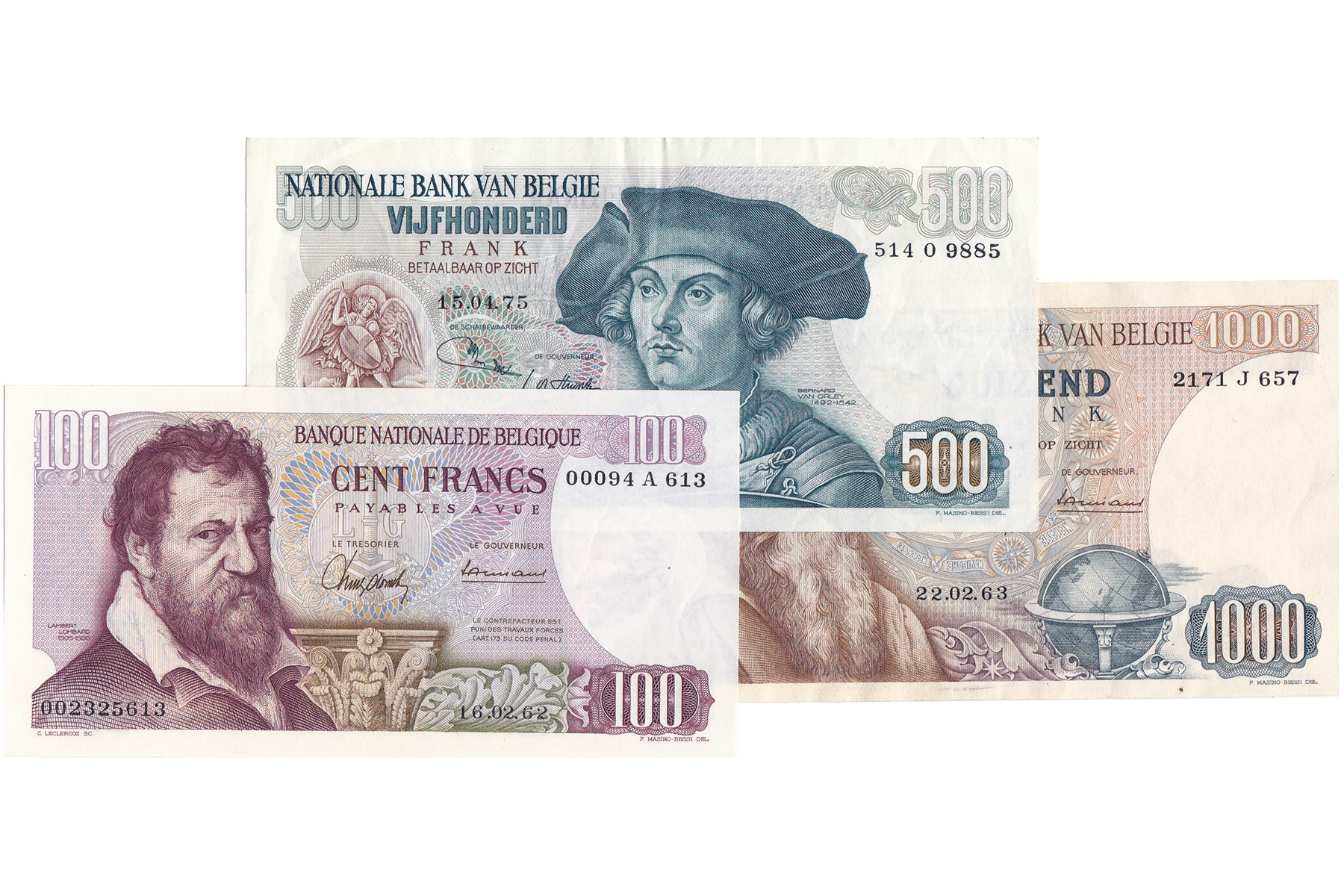 Lot (3) 100, 500 en 1000 Francs 1961-1971 issue. Pick 134a, 135b en 136a. VF and better.