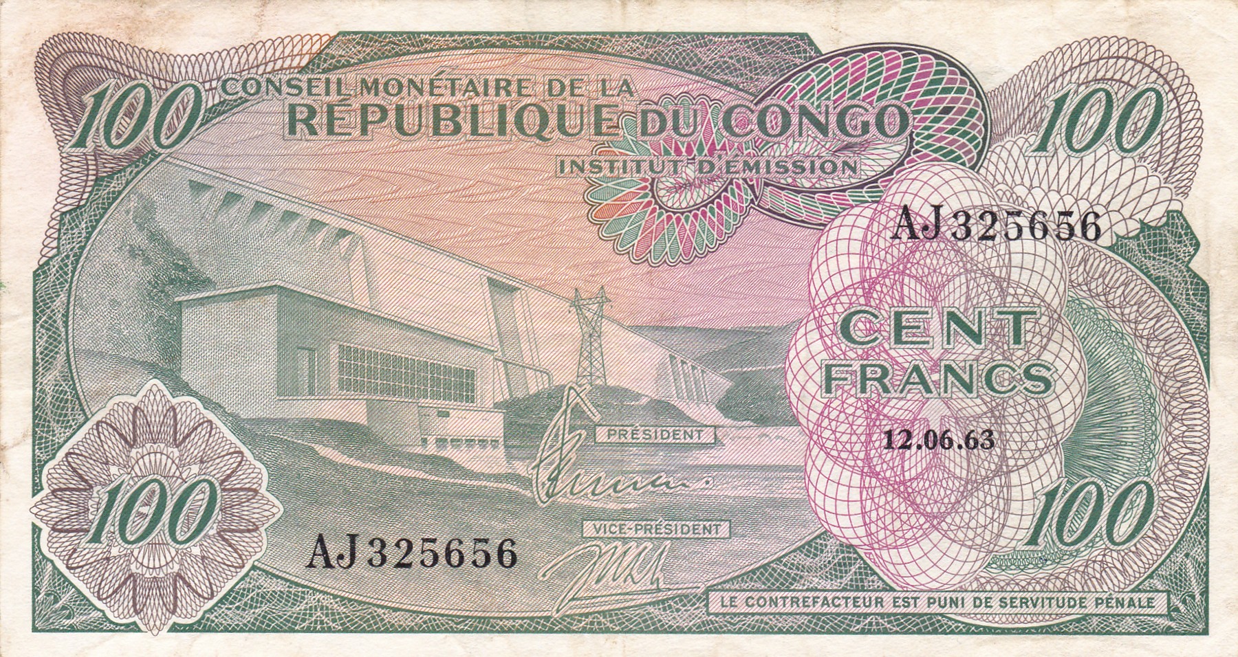 100 Francs 1963. Pick 1 [# AJ 325656]. VF.