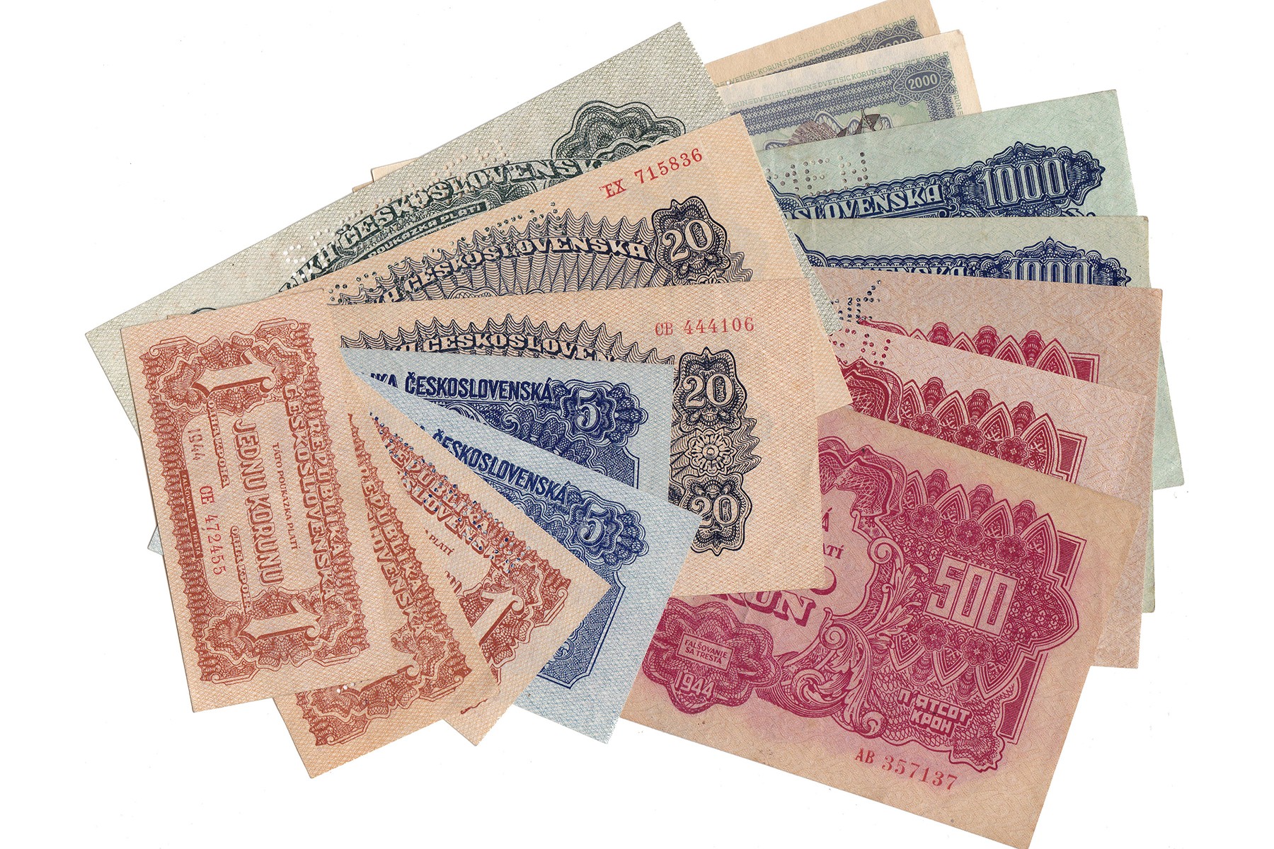 Lot (15) 1 Koruna t/m 2000 Korun 1944-1945 issue, complete serie inclusief Specimen-biljetten waaronder ook enkele dubbele (m.u.v. Pick 48a, 46a, 50a, 50Aa). Pick 45 t/m 50A. Almost UNC.