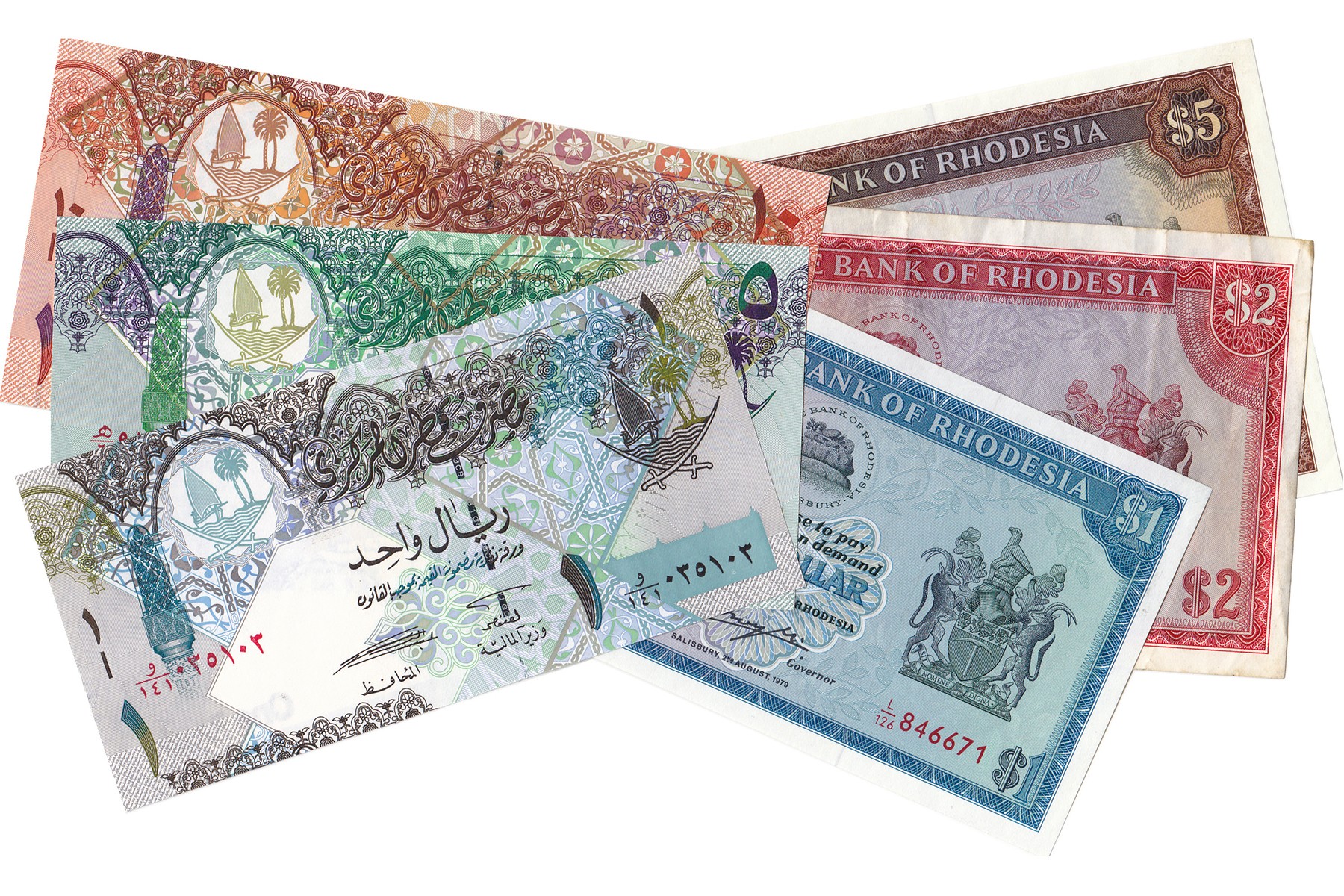 Lot (6) verschillende denominaties Rhodesia en Qatar. Pick 38 t/m 40; 20 t/m 22. Almost UNC.