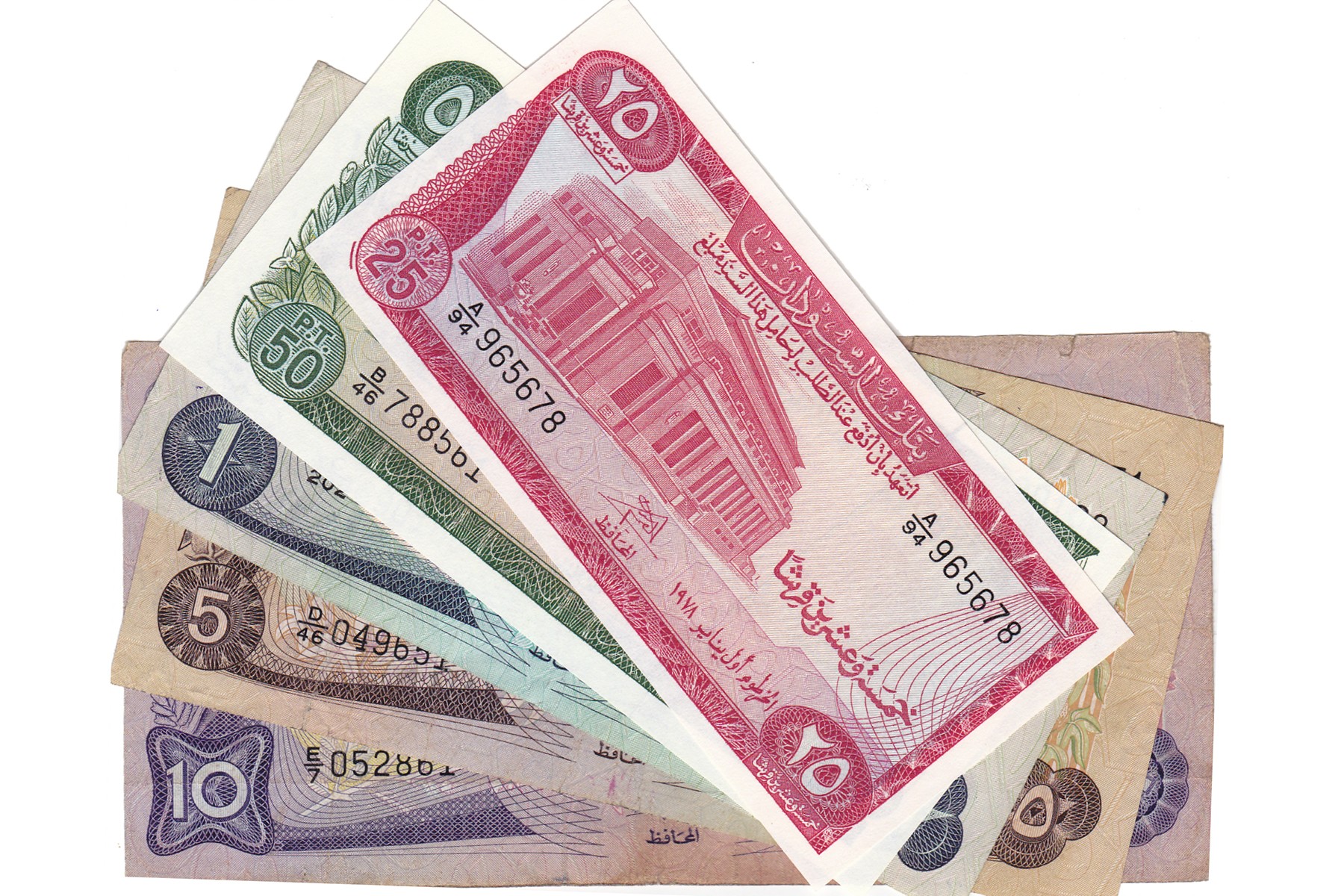 Lot (5) complete serie 1970-1980 issue 25 Piastres t/m 10 Ponds. Pick 11 t/m 15. VF and better.
