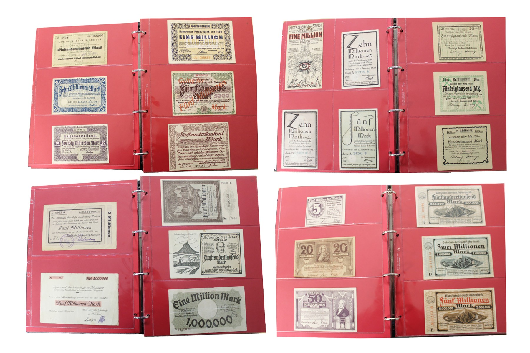 Groen Importa-album met ca. 90 stuks betere noodbiljetten van Duitsland (H – K). Allen verschillend. Dit album maakt deel uit van een grotere collectie bestaande uit 8 kavels.