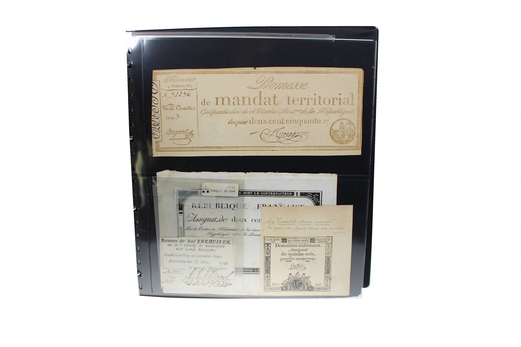 Zwart Lindner-album met bankbiljetten allerlei! O.a. voor een paar miljard Duitse inflatiebiljetten, assignaten, Japanse Regering, Nederlands-Indië, Javasche bank, en diverse wereld waarbij ook Nederland. Goed nazien!