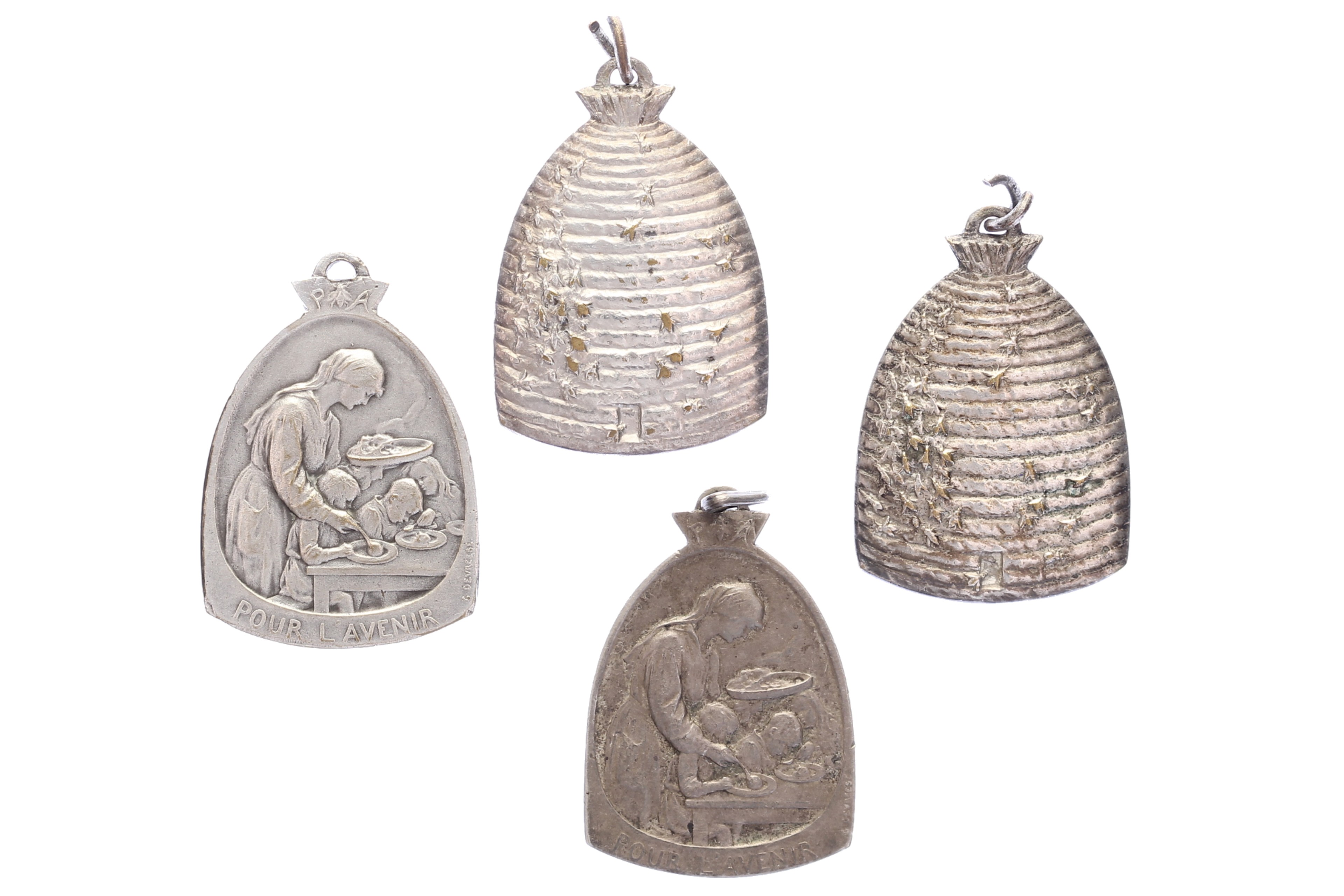 Lot (4) (1916) Liefdadigheidsinstellingen “De Bijtjes”. Bijenkorf met honingbijen. / Moeder geeft kinderen te eten. AR + Æ verzilverd 34 x 24 met draagoog. Willenz 173; PVD 187. Prachtig.