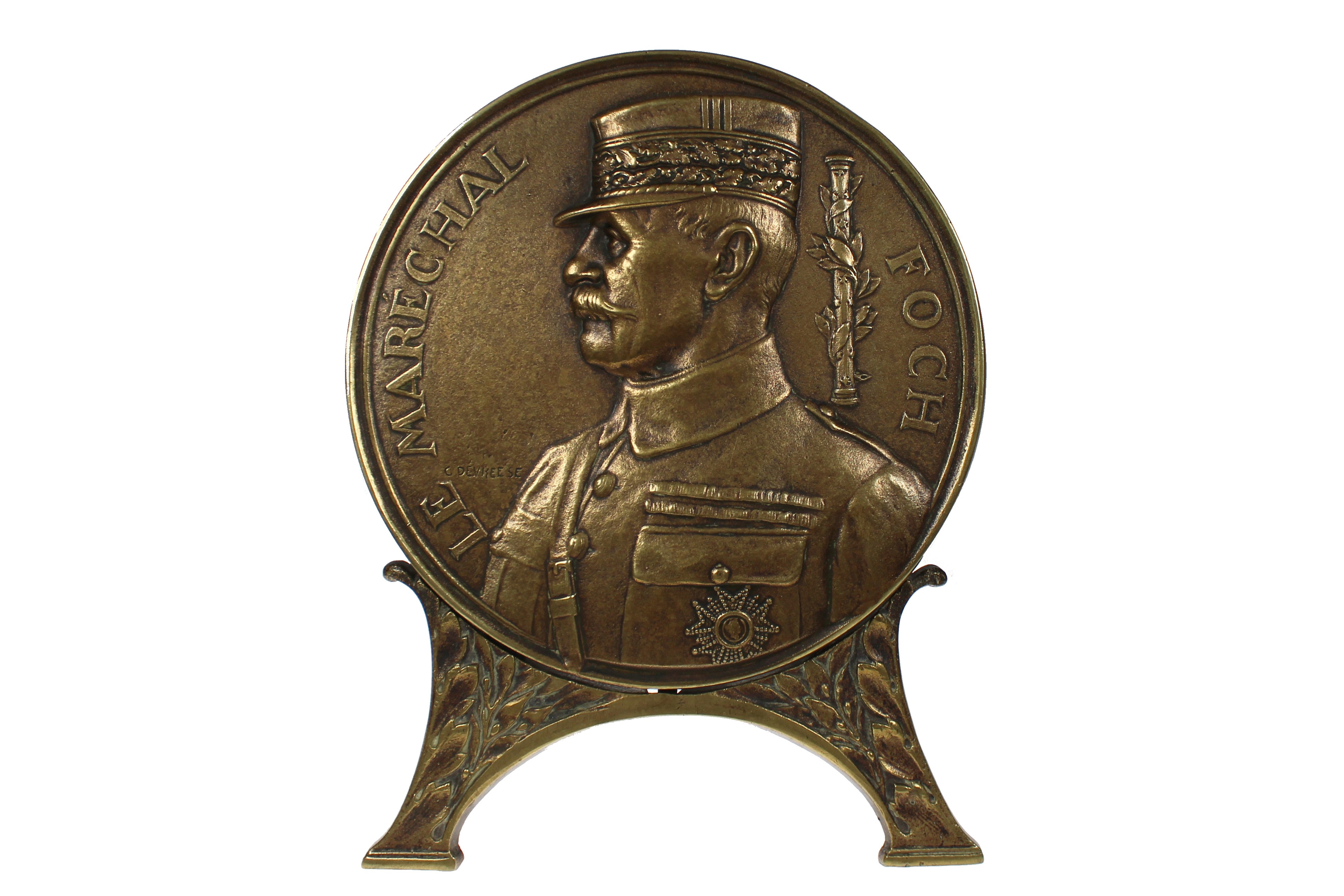(1920) Maarschalk Foch. Buste naar links. Æ gegoten 162. Willenz 223; PVD 241. Met originele standaard. Prachtig.