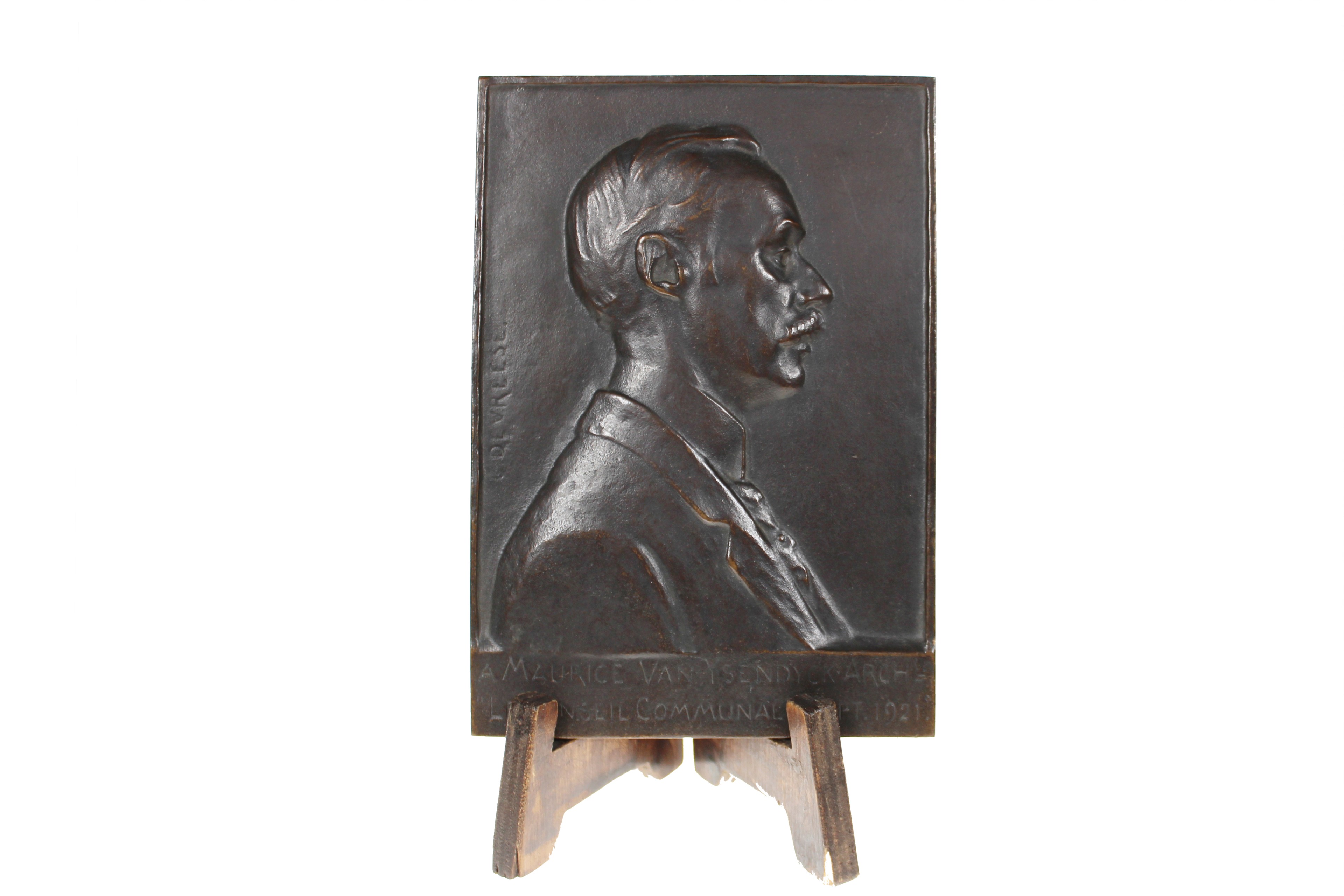 1921 Ter ere van Maurice van Ysendyck, architect. Buste naar rechts. / Blanco (incuus vz.). Æ gegoten 148 x 104. Willenz 421; PVD 251. Prachtig.