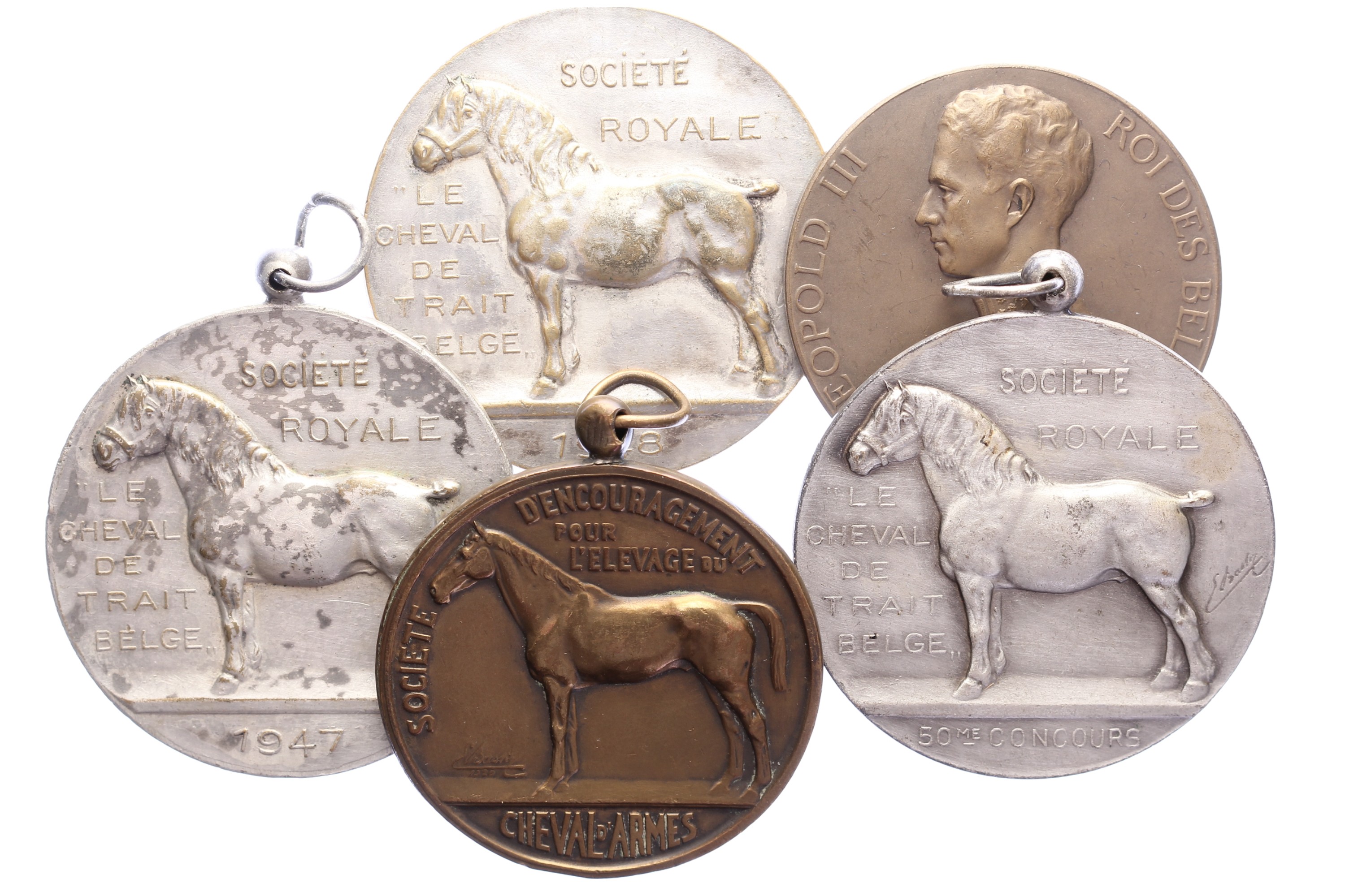 Lot (5) 1920-1948 “Serie van het Paard”. Diverse voor- en keerzijdes. Willenz 371; PVD 389. Zfr.