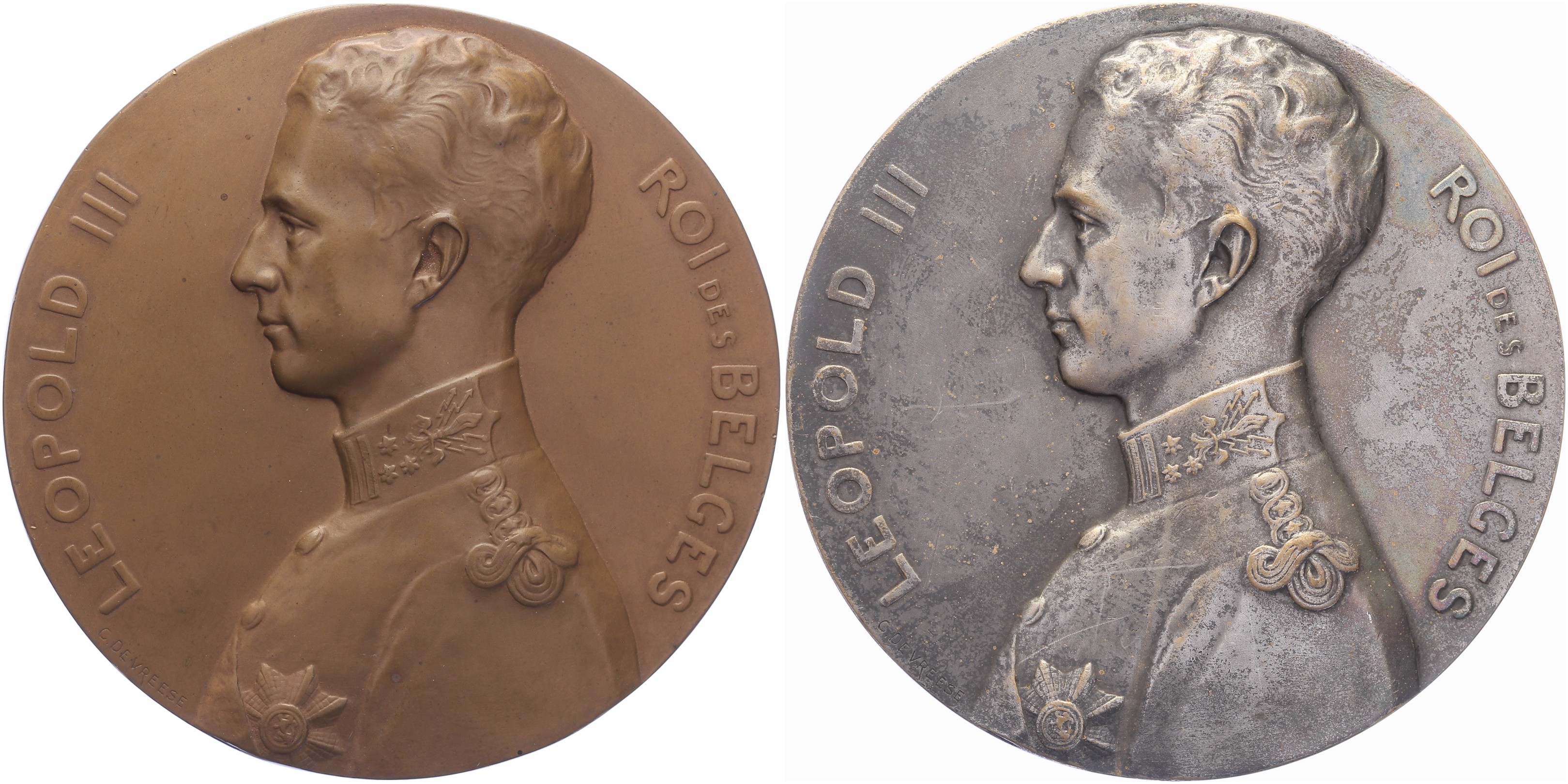 Lot (2) 1934 Eedaflegging Léopold III. Buste naar links. / Vijfregelig opschrift. Æ + Æ verzilverd 70. Willenz 372; PVD 390. Zeer fraai en prachtig.