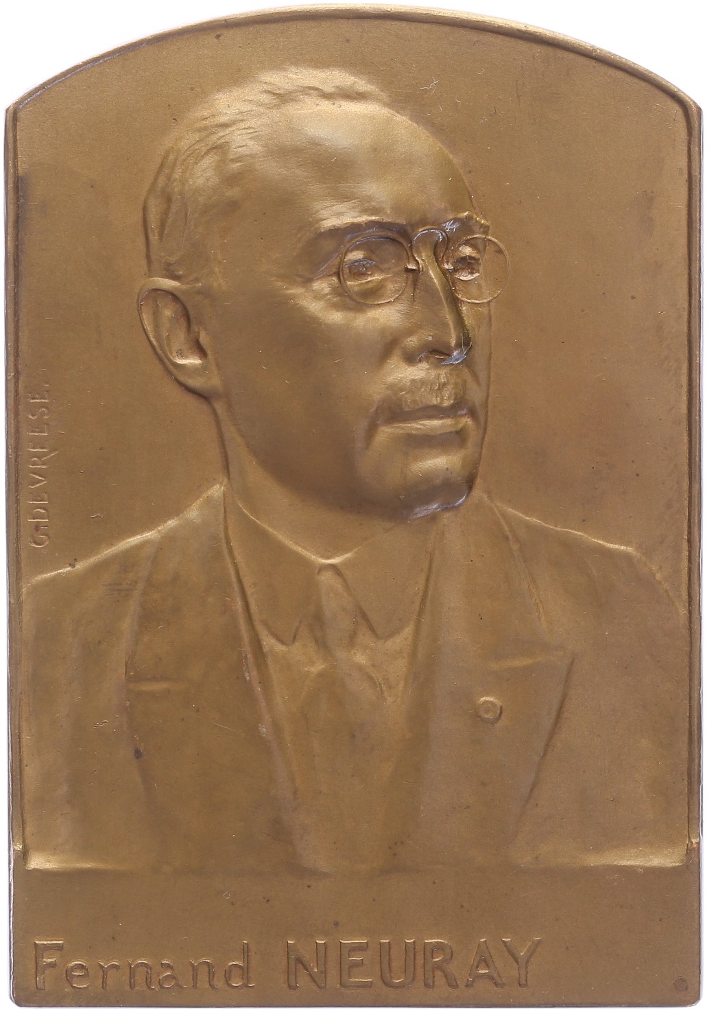 1936 Ter ere van Fernand Neuray, journalist. Buste iets naar rechts. / Blanco. Æ 71,5 x 49,6 met gebogen bovenkant. Willenz 384; PVD 407. Prachtig.