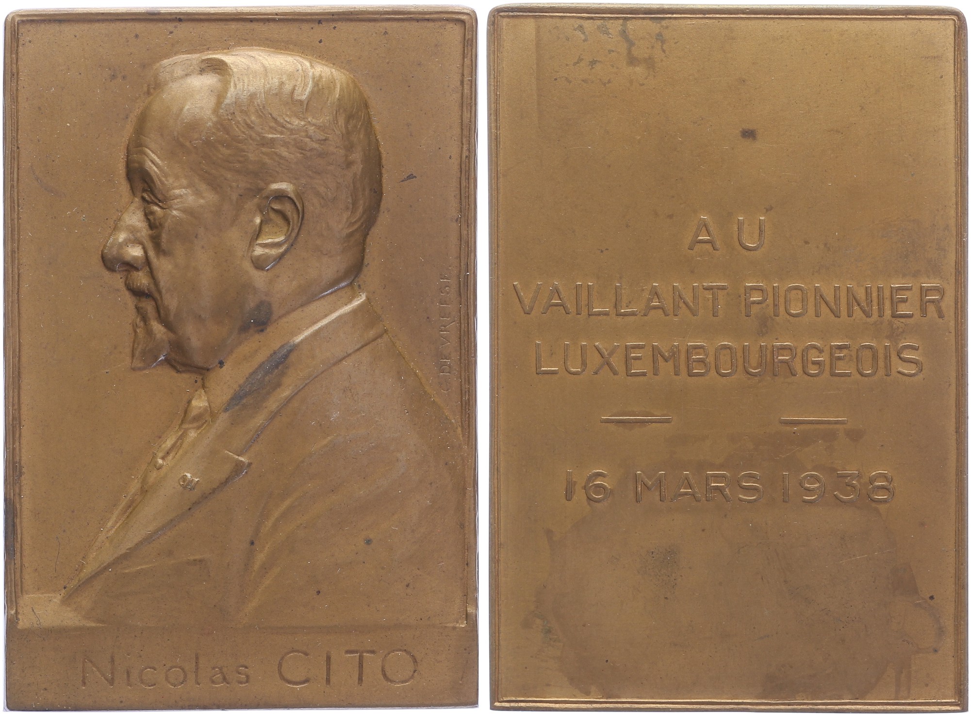 1938 Ter ere van Nicolas Cito, spoorwegconstructeur. Buste naar links. / Vierregelig opschrift. Æ 71 x 48. Willenz 400; PVD 426. Zeer fraai.