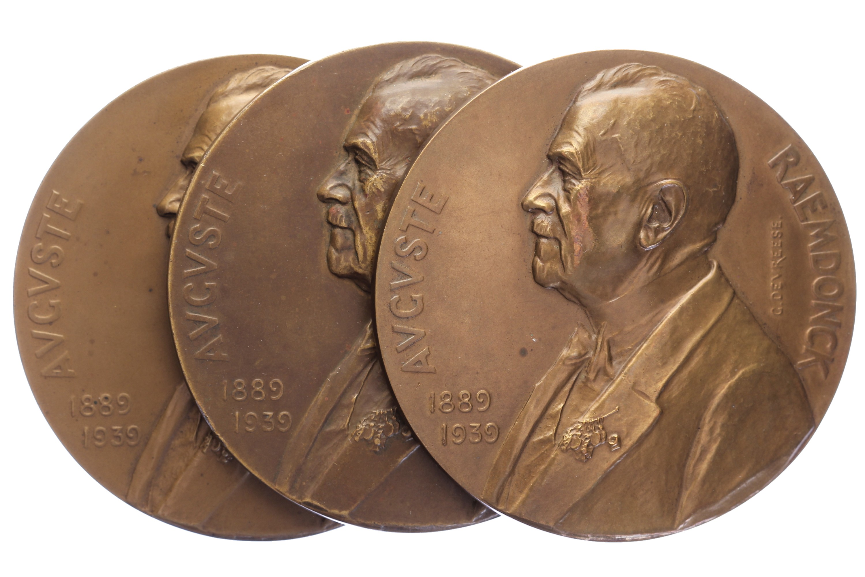 Lot (3) 1939 Ter ere van Auguste Raemdonck, volksvertegenwoordiger. Buste naar links. / Elfregelig opschrift. Æ 70,8. Willenz 403; PVD 430. Prachtig.