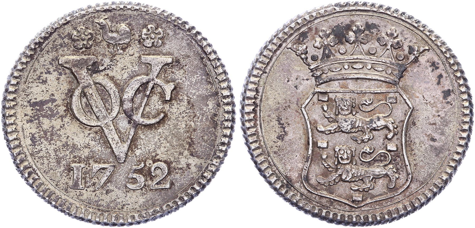West-Friesland. Duit 1752. Afslag in zilver van 4,74 gram, kabelrand. Scholten 233a; CNO 15.13. Schaars type. Prachtig.