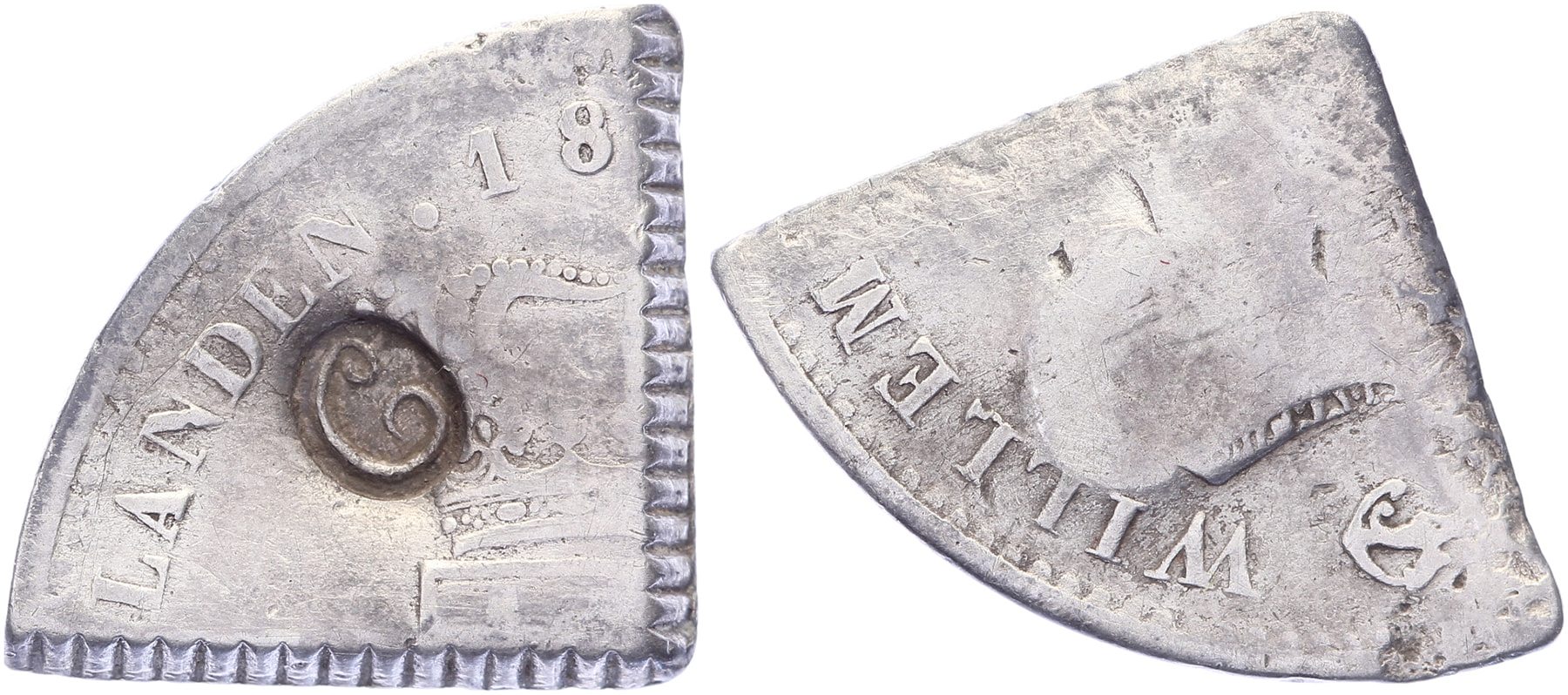 Driekantje van 25 cent z.j. (ca. 1838). Scholten 1388; CNO 61.4. Zeer fraai.