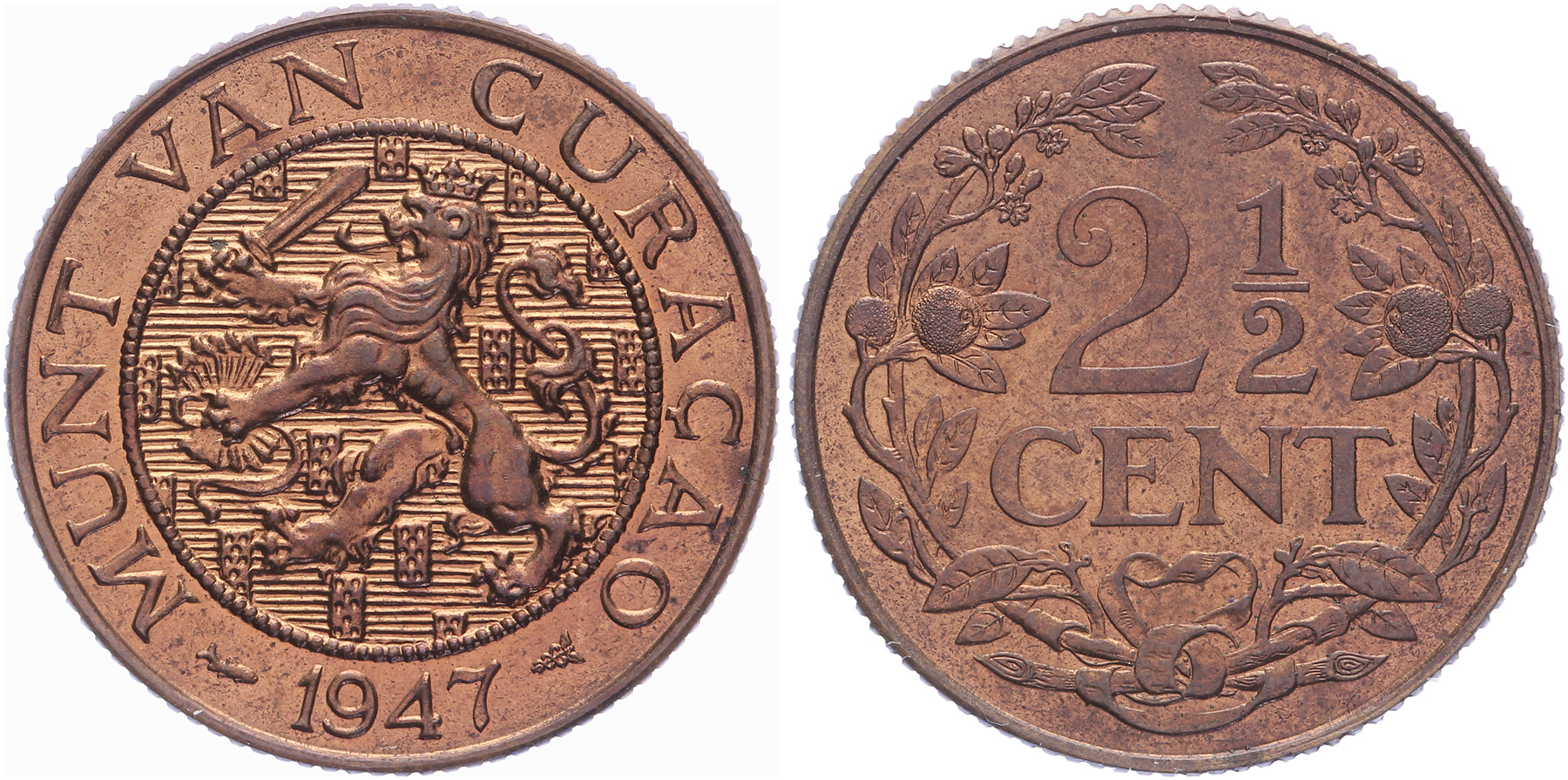 2½ Cent 1947 met gepolijste stempels geslagen. Scholten 1405; CNO 64.5. FDC.