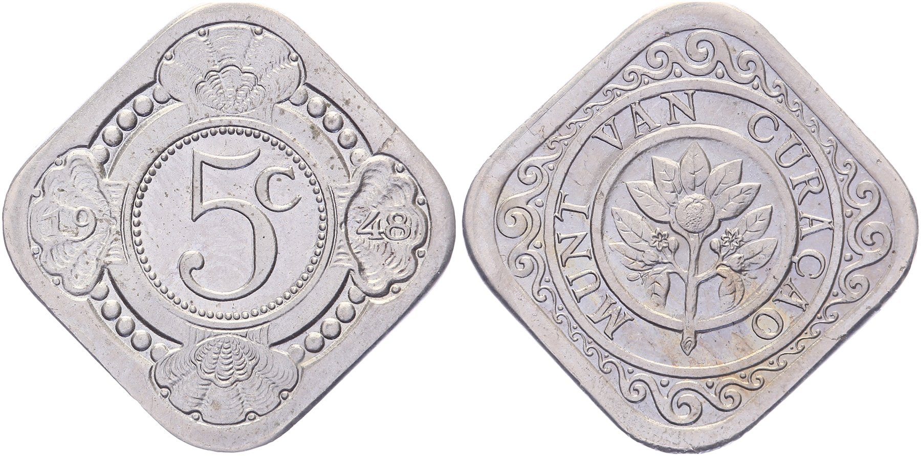 5 Cent 1948 met gepolijste stempels geslagen. Scholten 1404; CNO 64.4. FDC.