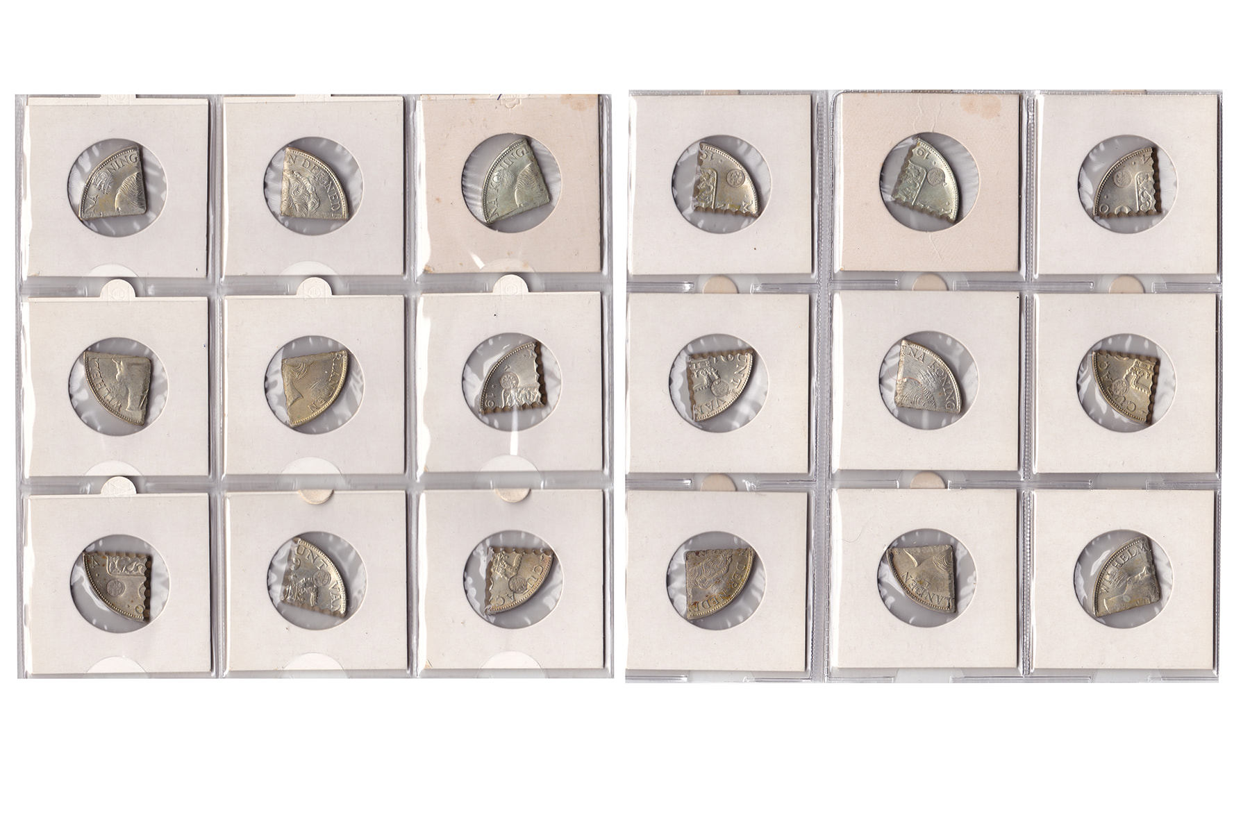 Lot (9) Rijksdaalder 1944 in vieren gedeeld en elk deel voorzien van klop bij het 10-jarig bestaan van de Vereniging Numismatica Curaçao. Prachtig / FDC.