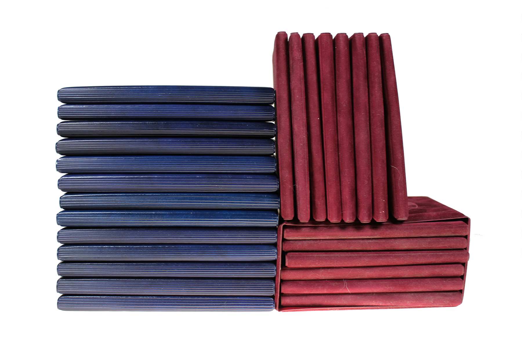 Doos (27) proofsets. Blauw (1983-1995) 13x; bordeauxrood (1986-2001) 14x.