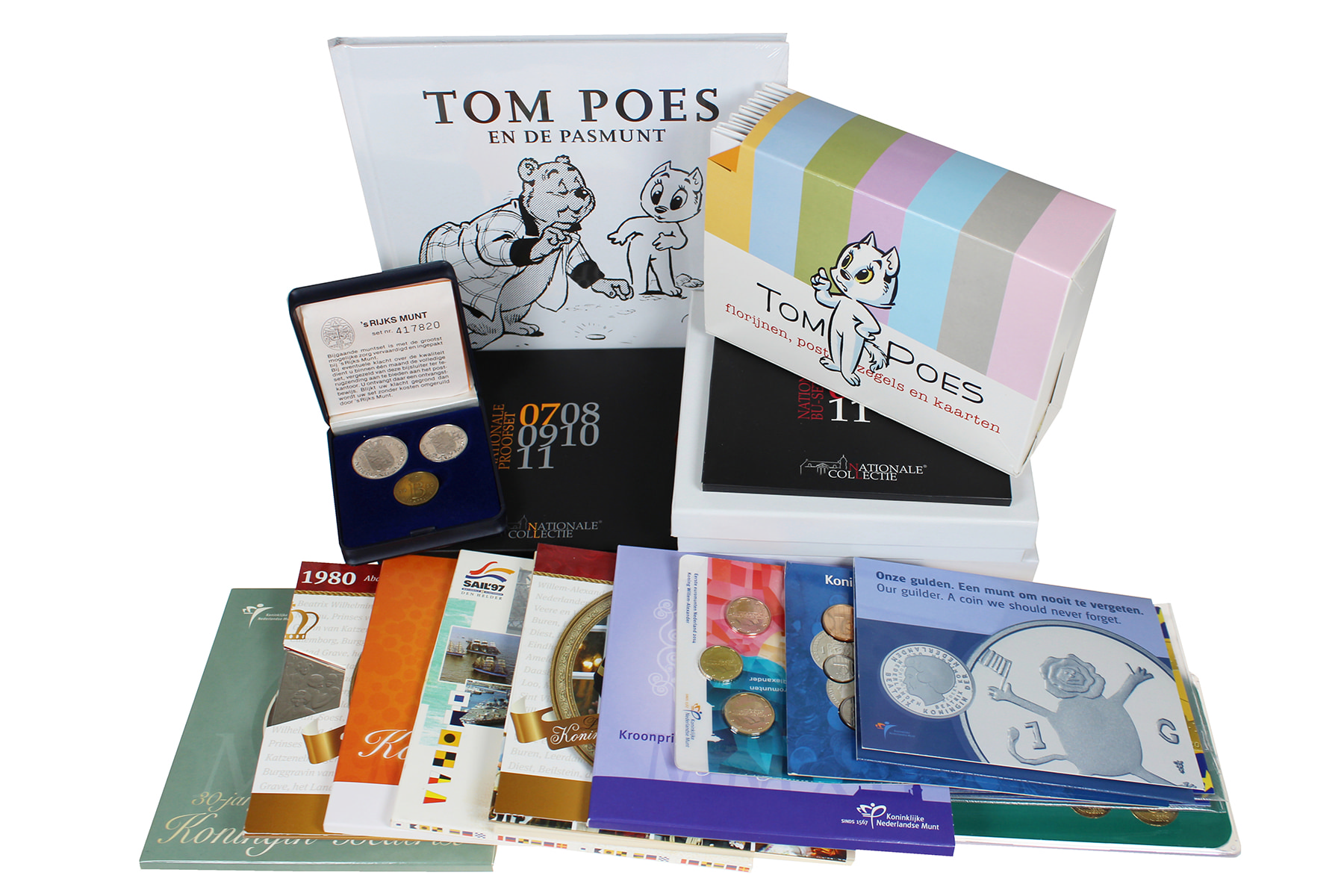 Doos met moderne sets Nederlands van uiteenlopende aard. O.a. Tom Poes en de pasmunt. Proof en BU-sets. Goed nazien.