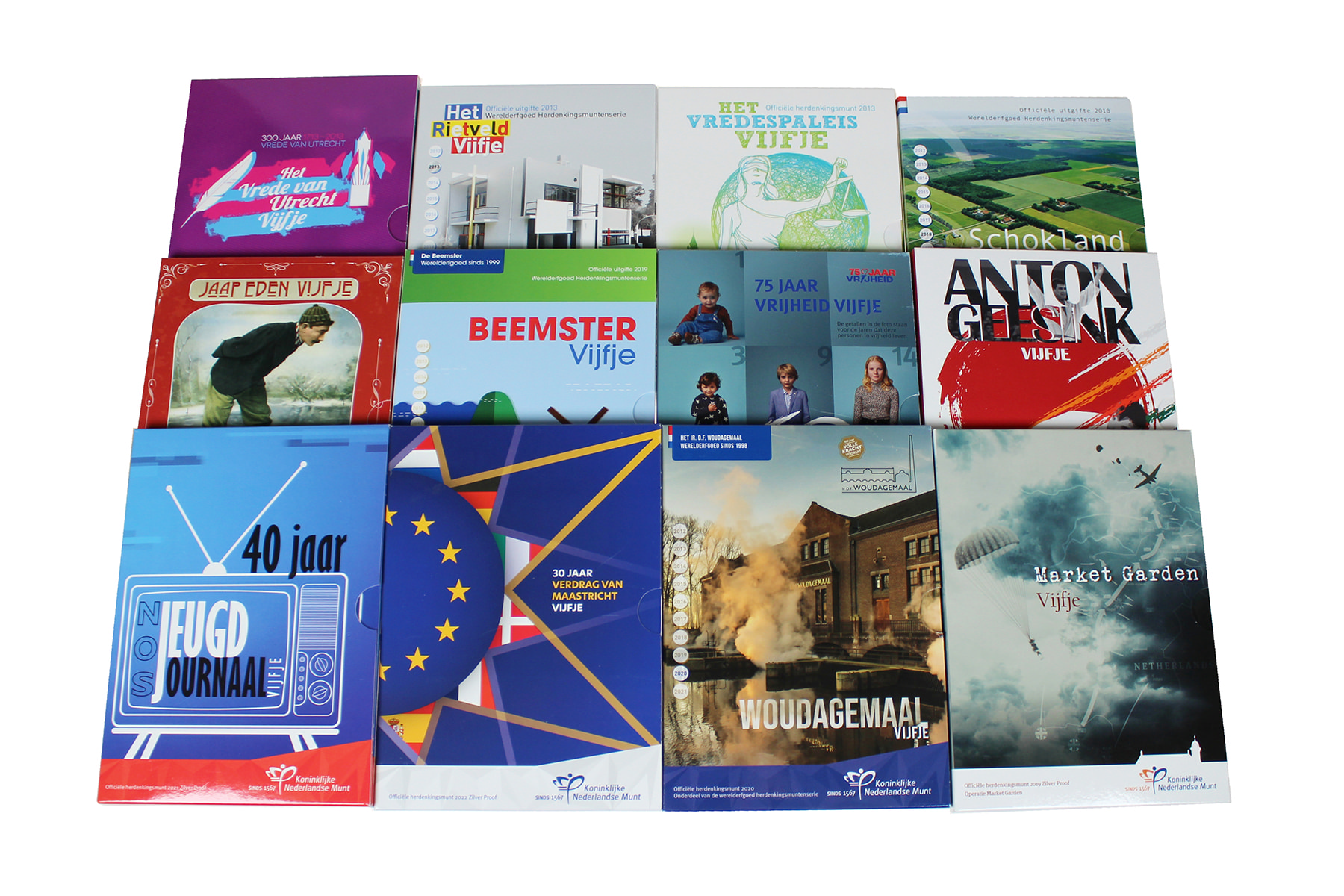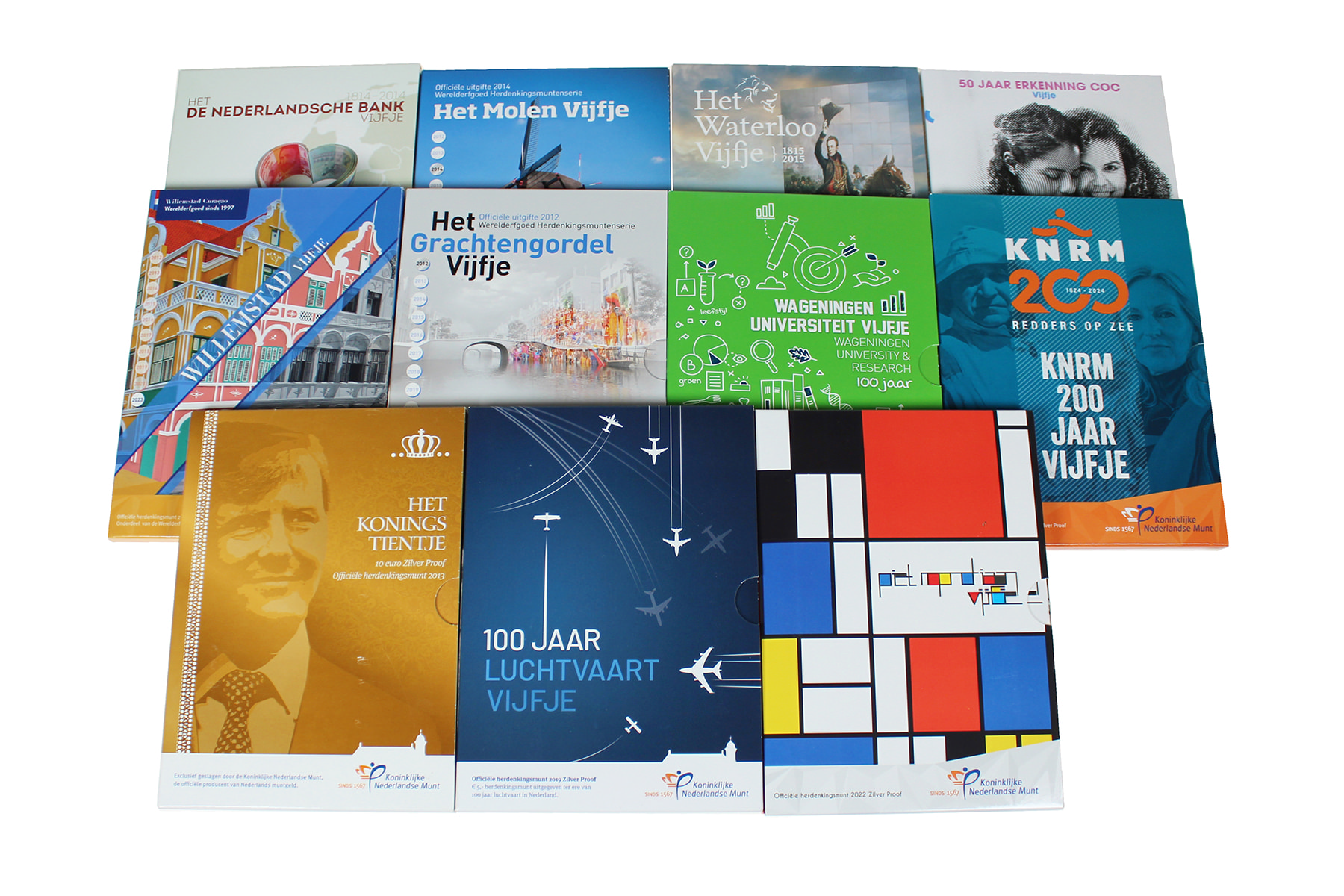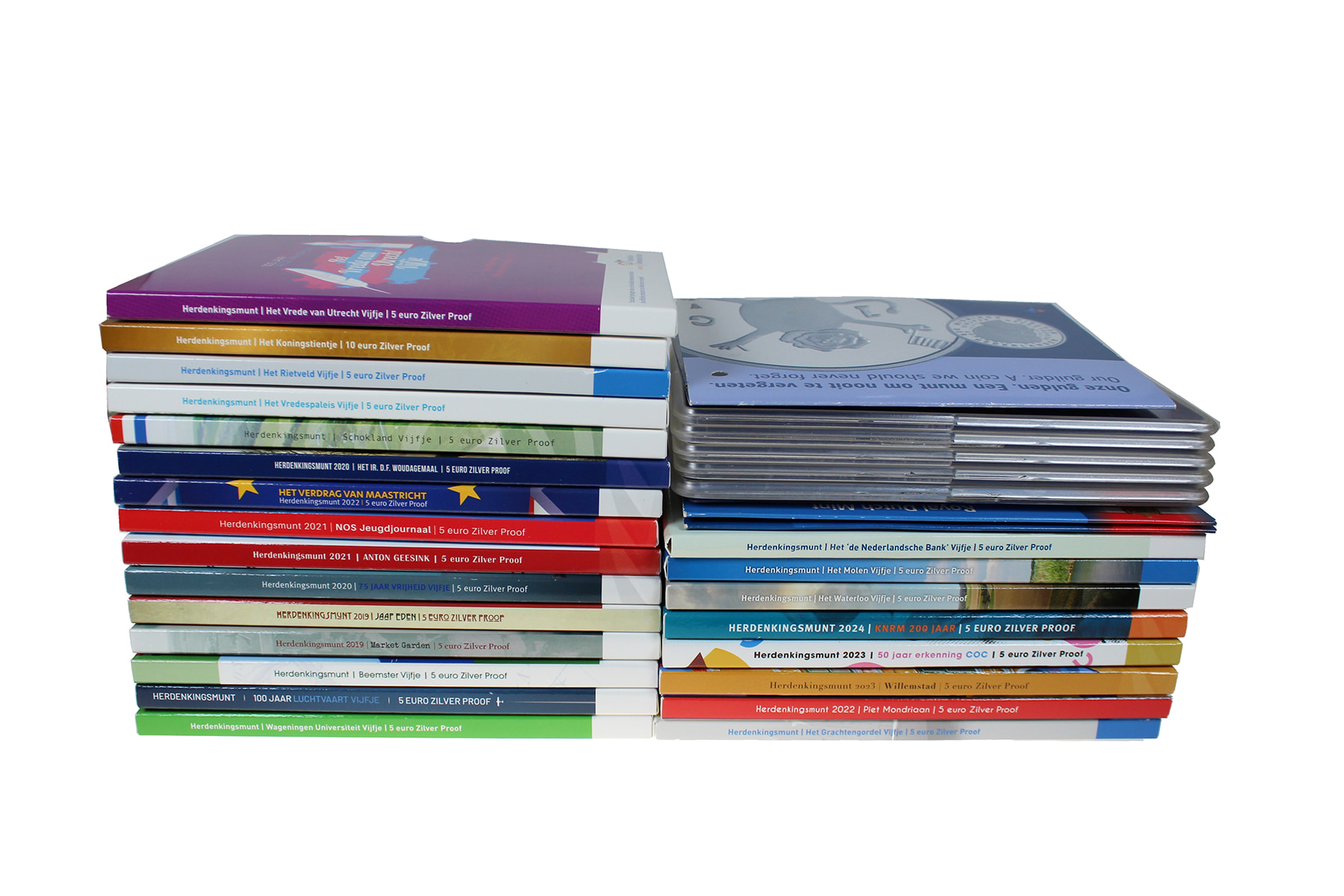 Schoenendoos met 22 x themaset 5 euro en 1x themaset 10 euro. Toegevoegd: 9x muntset.