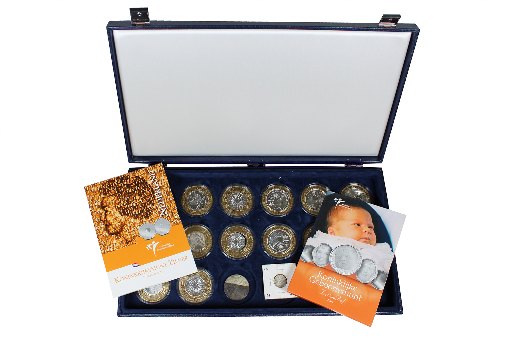 Blauwe cassette met o.a. zilveren Eurocollectie 5 - 10 euro, uitgegeven door de KNM.