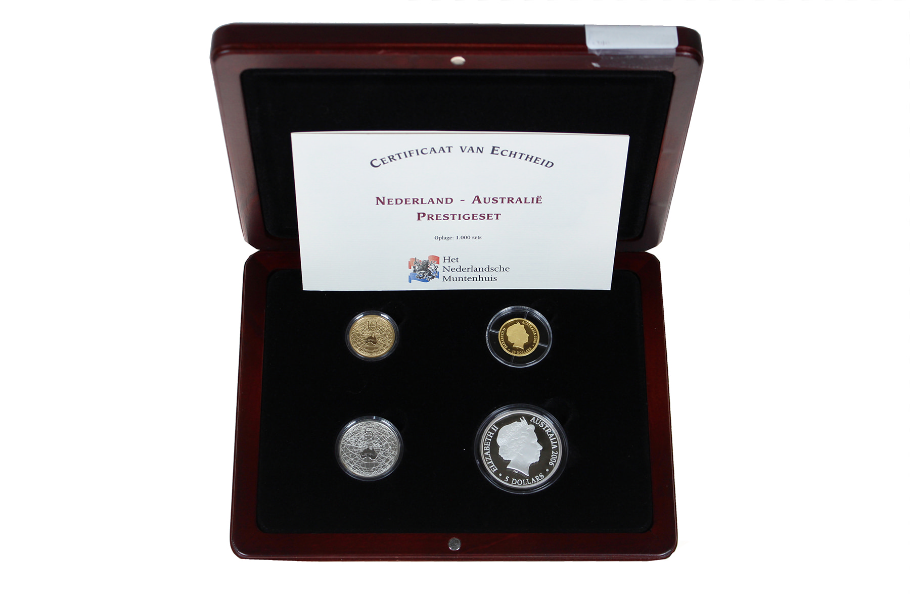 Prestigeset Nederland - Australië. 2 x goud en 2 x zilver. Proof in cassette.