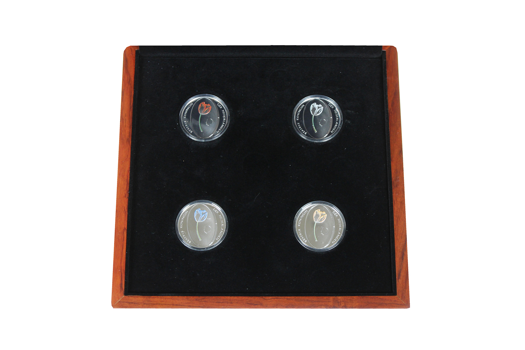 Zilveren Tulpen kleurset - 400 jaar diplomatieke betrekkingen Nederland - Turkije 1612-2012. In luxe opbergkist. Beperkte oplage! Proof.