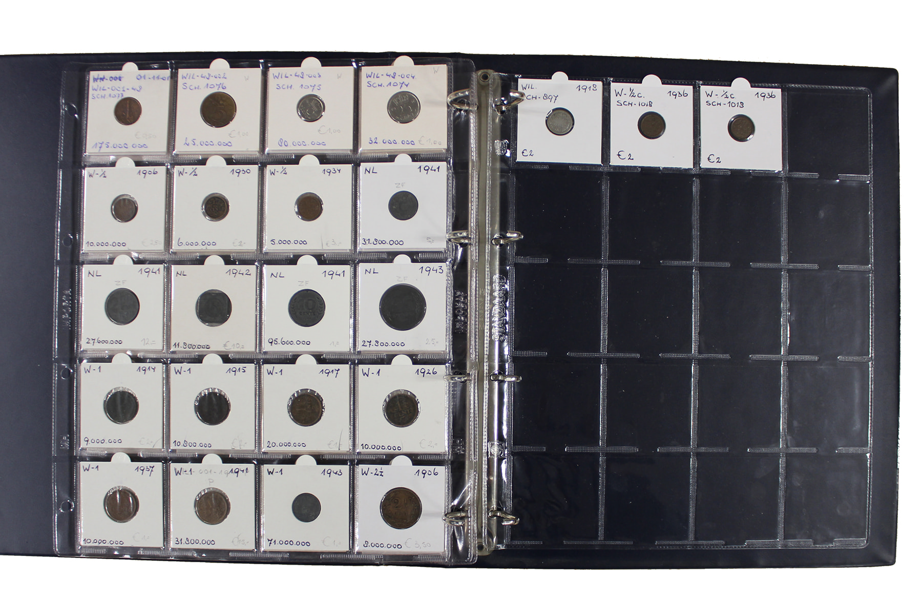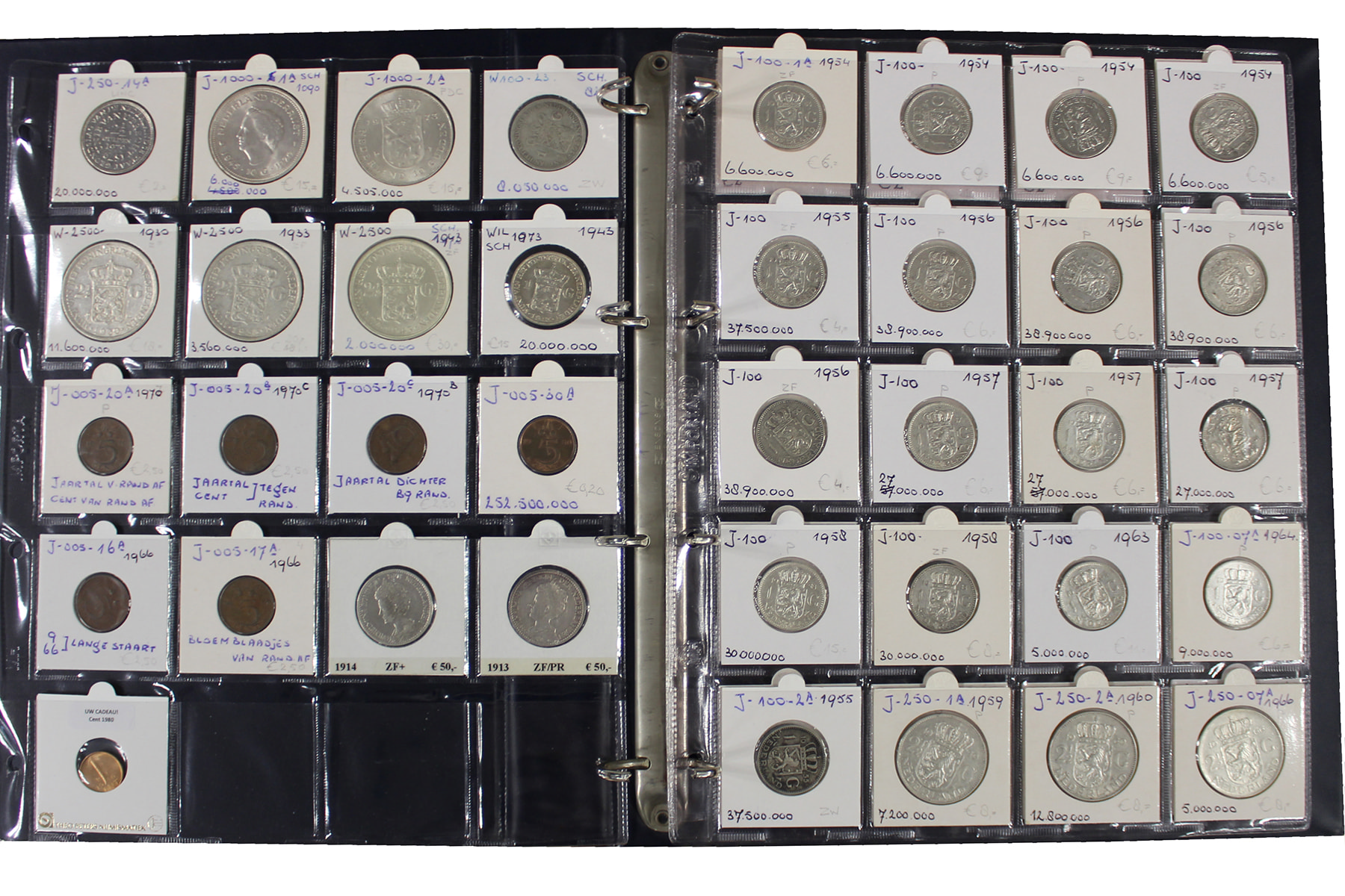 Blauw Hartberger-album met munten Wilhelmina en Juliana. Veel zilver.
