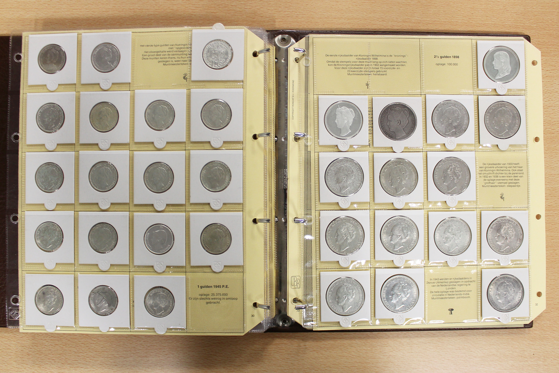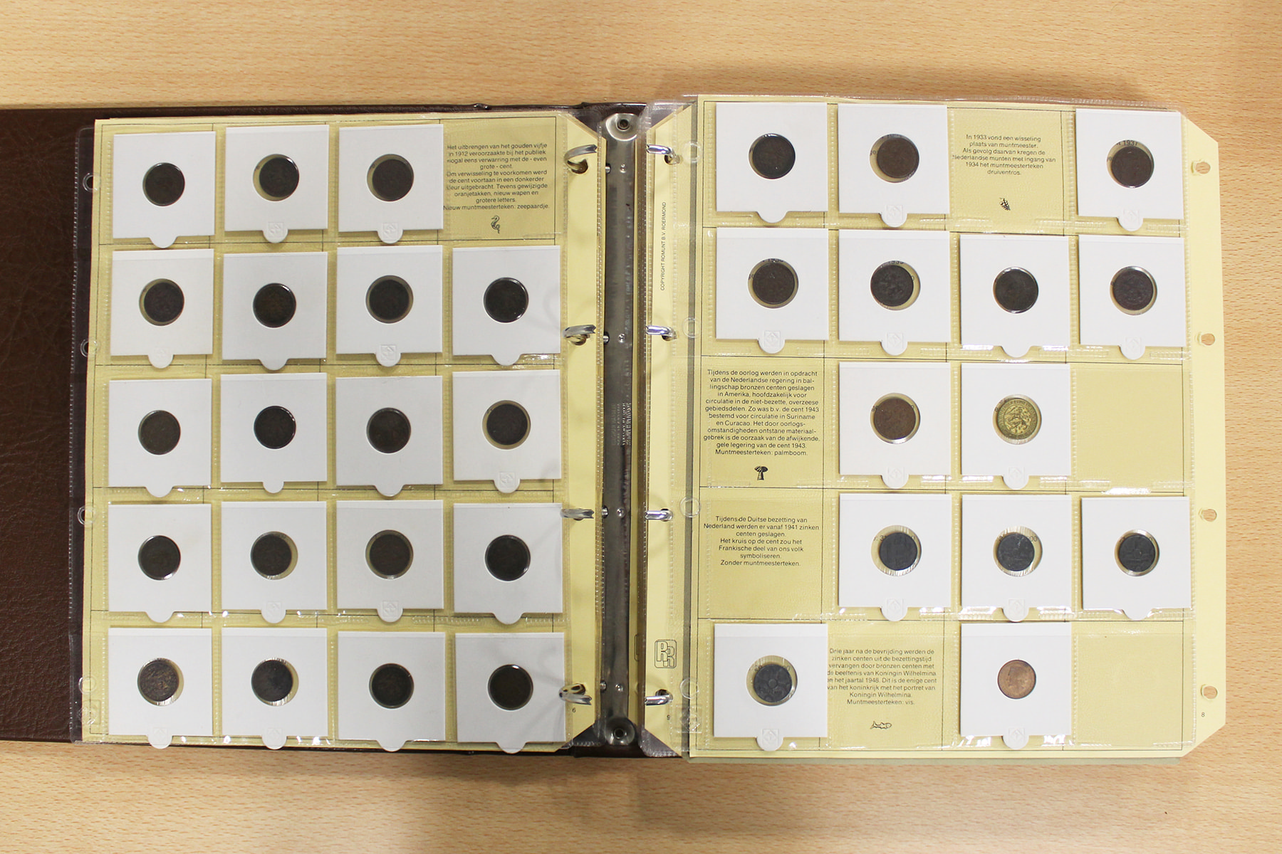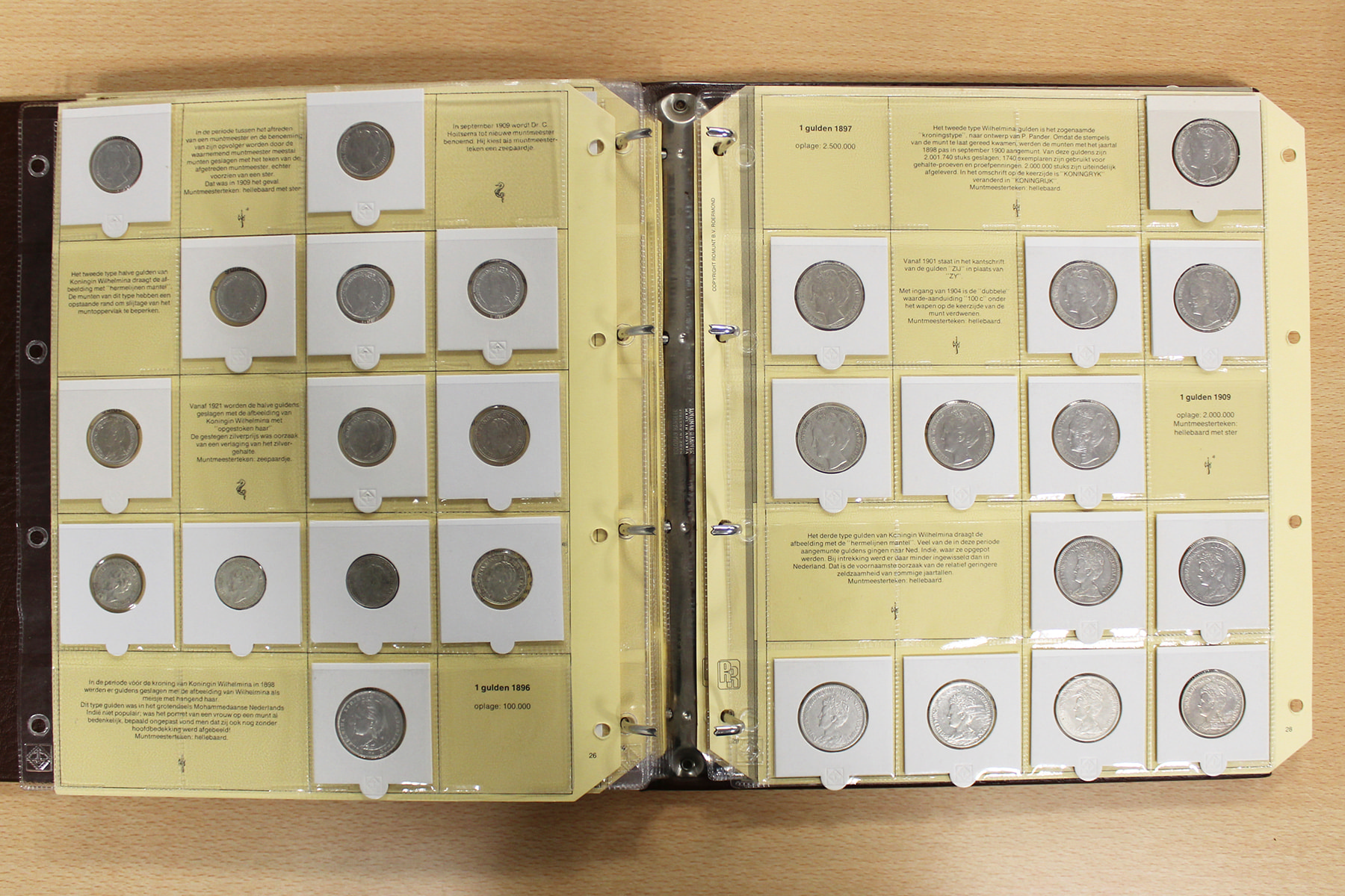 Bruin album met vrijwel complete collectie Wilhelmina 1890-1948. ½ Cent t/m 2 ½ Gulden. Aangevuld met diverse stukken, w.o. Gulden 1928 Huib Luns. Bovengemiddelde kwaliteit. Goed nazien!