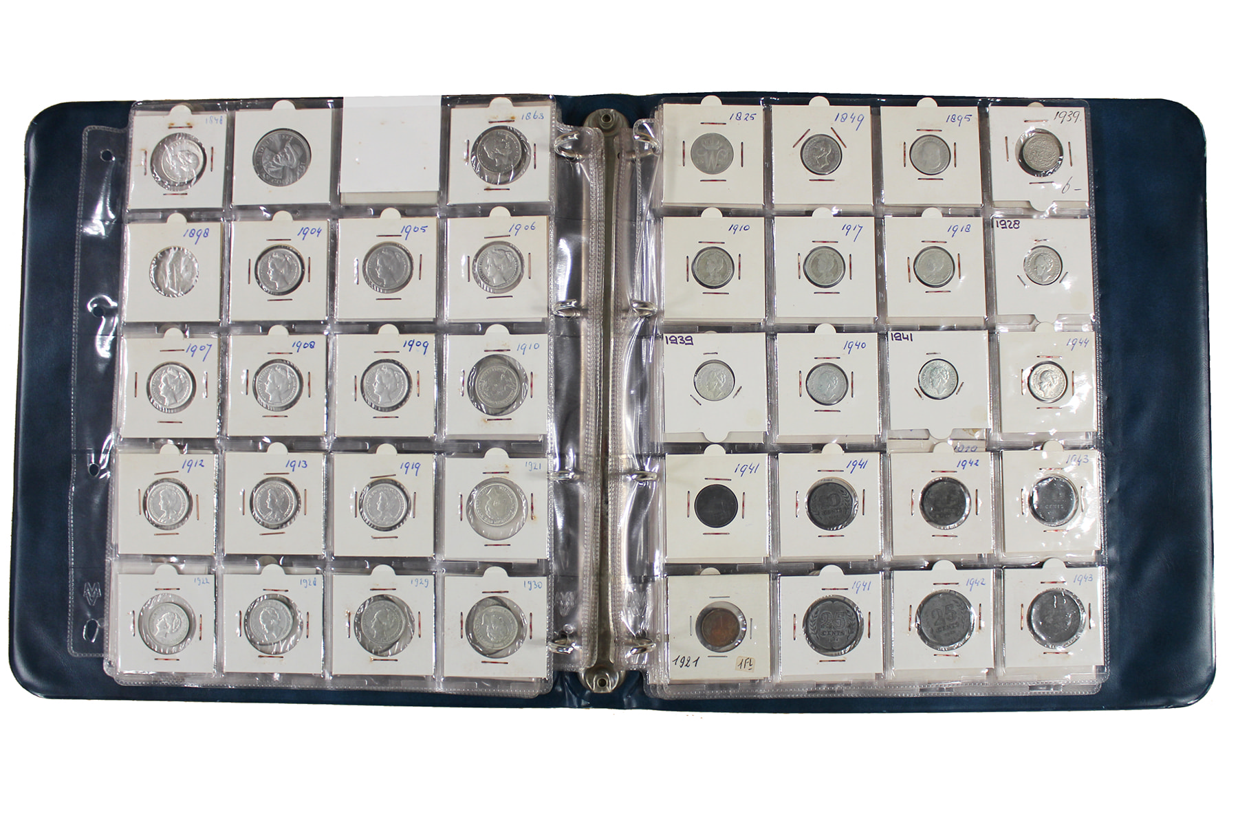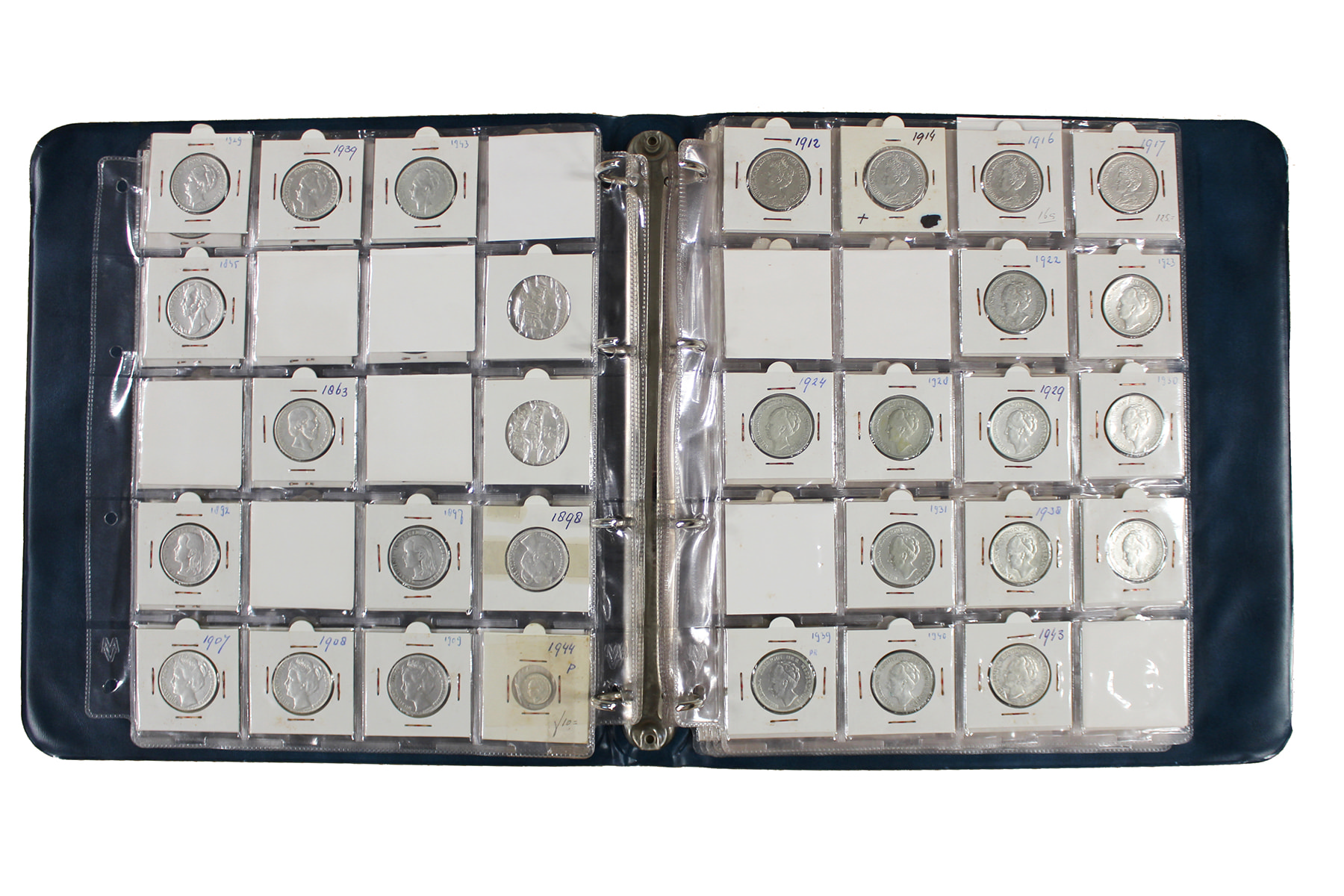 Blauw MV-album met oude restcollectie koninkrijk. Veel zilver!