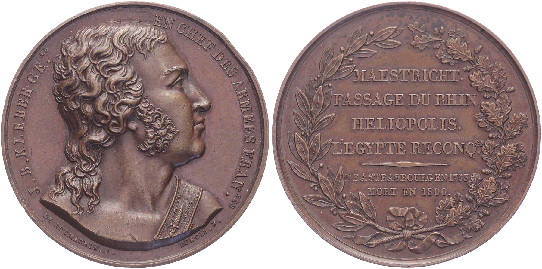 1800 Ter ere van generaal J.B. Kleber. Buste naar rechts. / Opsomming veldtochten, o.a. Maastricht, passage Rijn, Egypte etc. Æ 40. Bramsen 54. Etienne Dubois. In origineel doosje. Prachtig.