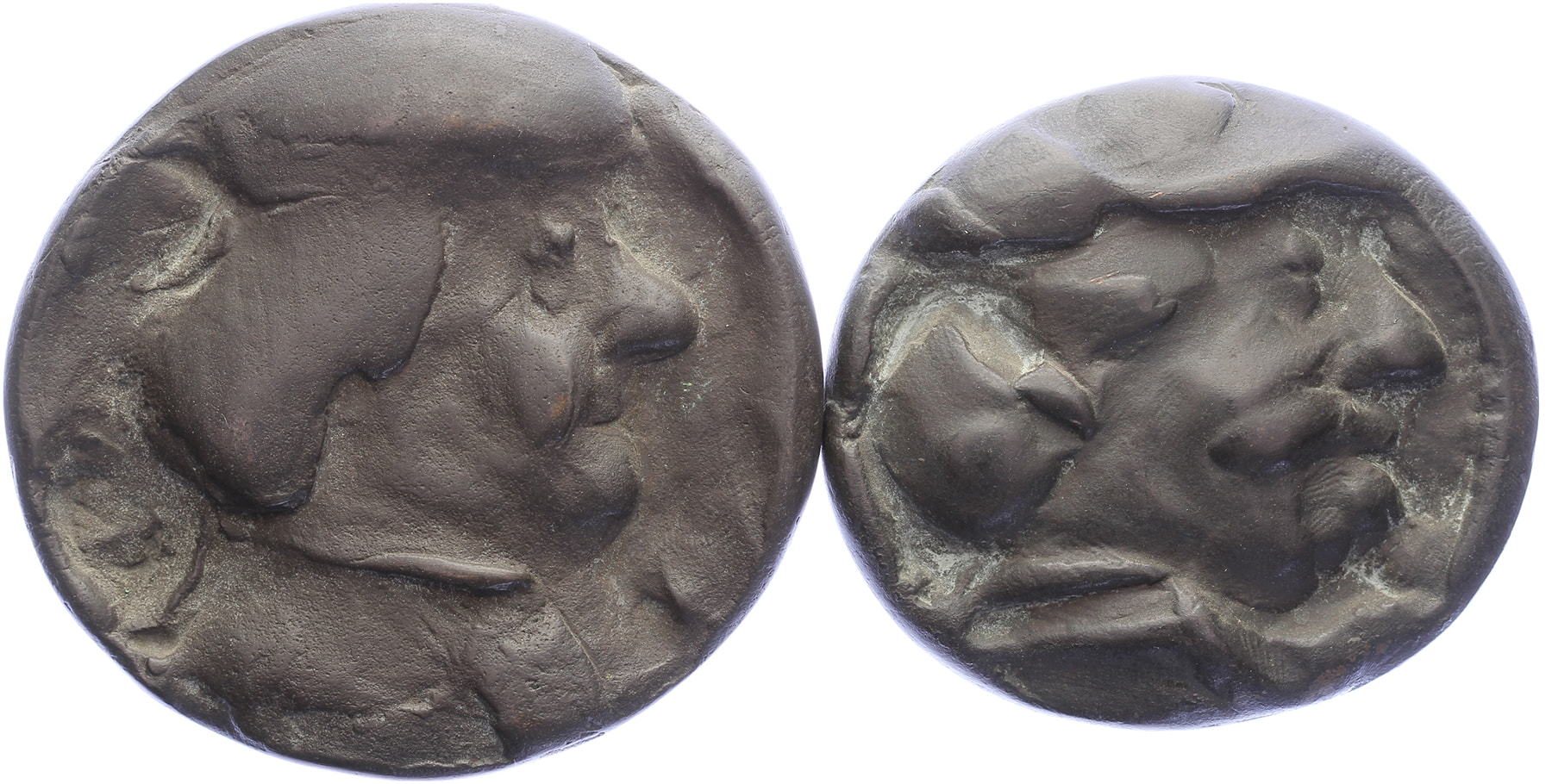 Lot (2) 1988 De oude en de jonge Rembrandt. Portret oude en jonge Rembrandt naar rechts. / Tekst. Æ gegoten 70 en 55. Tilanus p. 467-473. V.P.S. Esser. Prachtig.