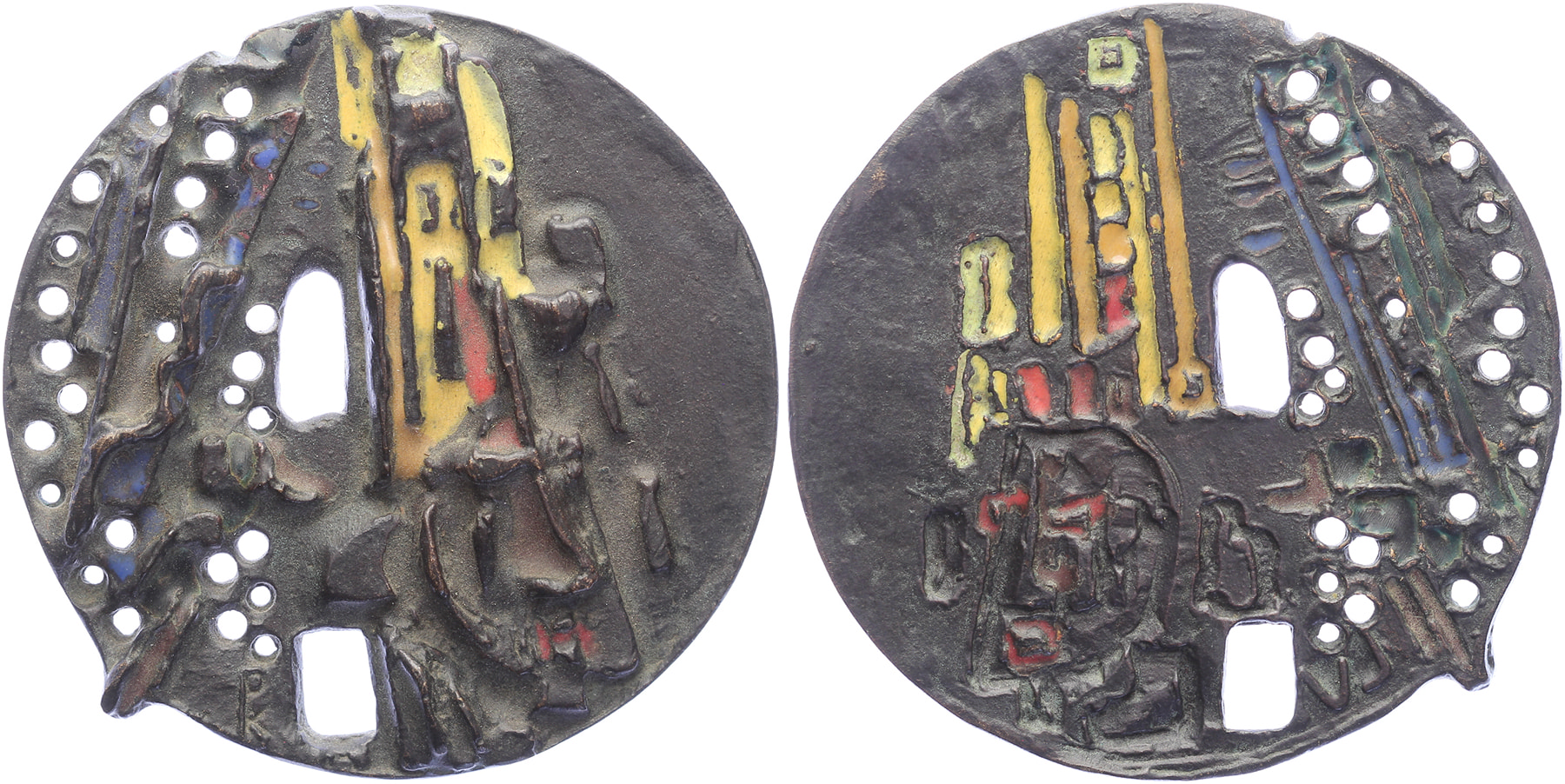 1993 De koning en de vogel. Vz. + Kz. symbolische weergave ‘de koning en de vogel’.Æ gegoten en geëmailleerd 80. Tilanus p. 511-513. Linda Verkaaik. Prachtig.