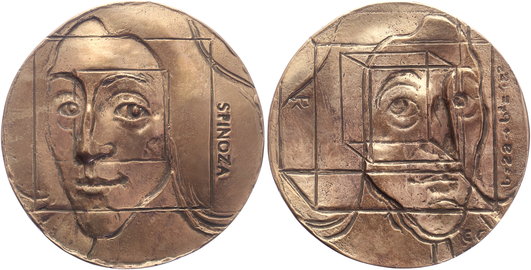 2001 Spinoza. Hoofd Spinoza, de beschouwer aankijkend. / Gespiegelde vz.Æ gegoten 98. Eric Claus. Prachtig.